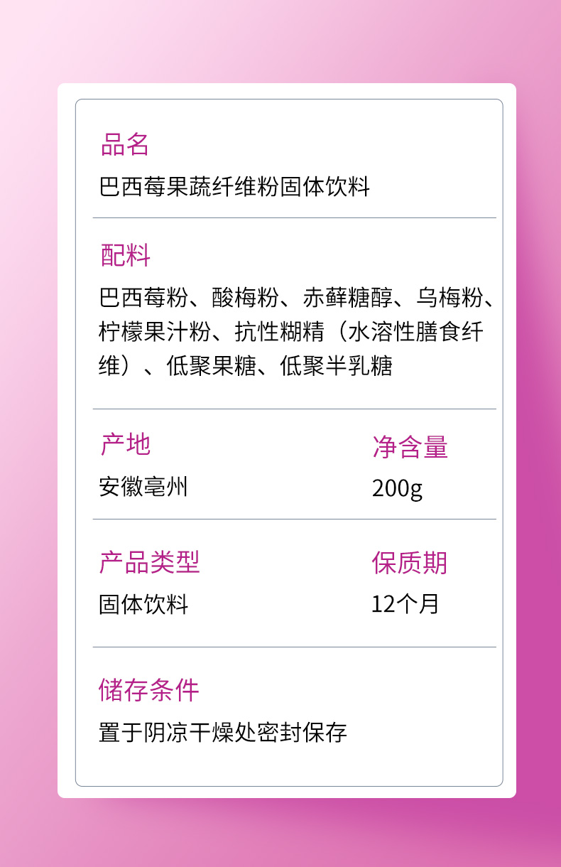 【拯救黄黑皮 丰富花青素 】巴西莓果蔬纤维粉 零蔗糖零脂肪 膳食纤维 女性代餐