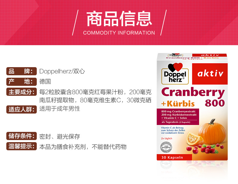 【德国双心】南瓜籽油蔓越莓精华胶囊男性保养精华三盒装(临期至26.6)