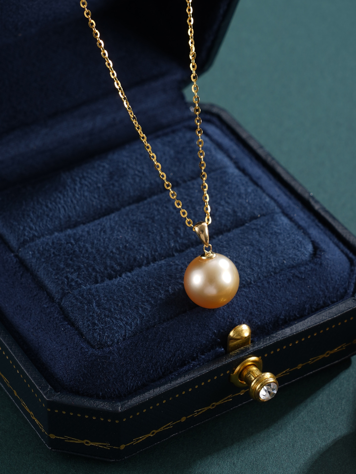 子佩集【璨若骄阳】G18K珍珠惜王妃吊坠【JQH003】10mm珠海水珠金色吊球镀金(不含链)2601