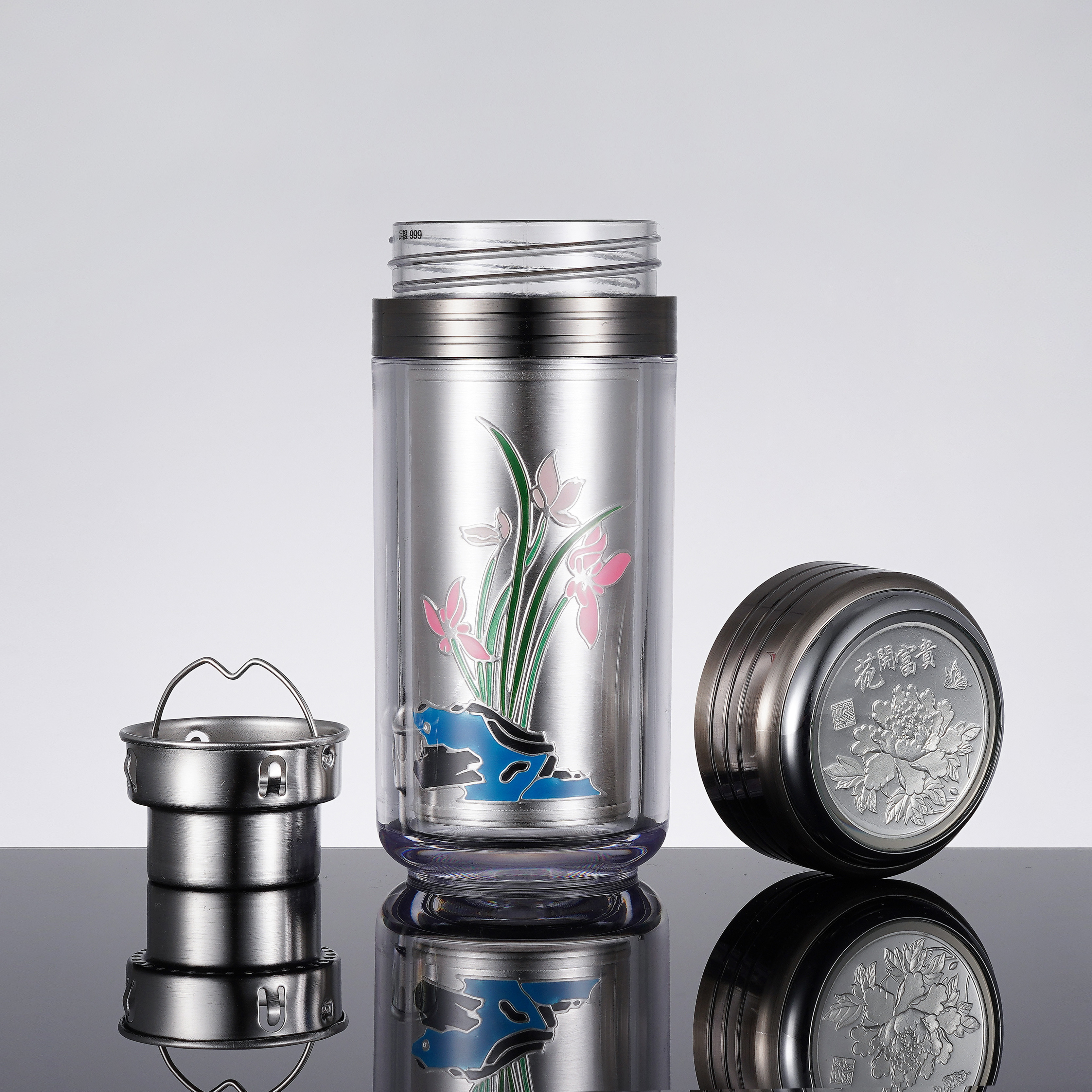 子佩集S999银小彩银杯摆件【DLBJB009】纯银内胆-兰花泡茶杯2106