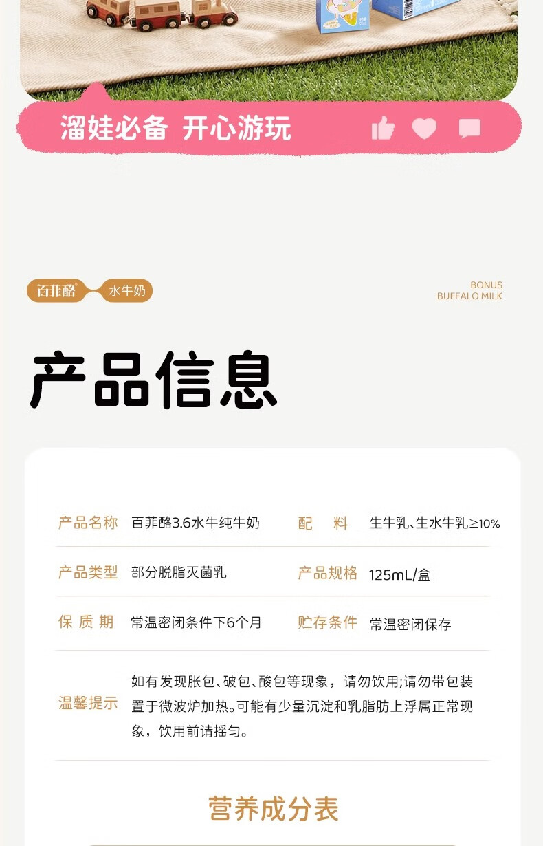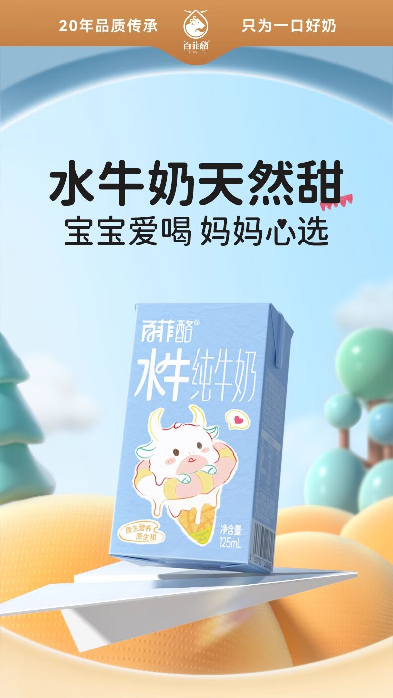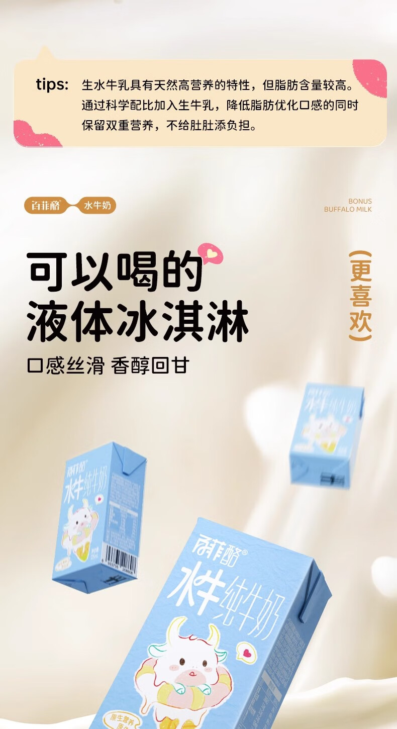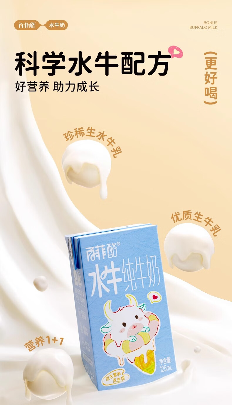 百菲酪3.6g水牛纯牛奶125ml*9 生产日期25年7月