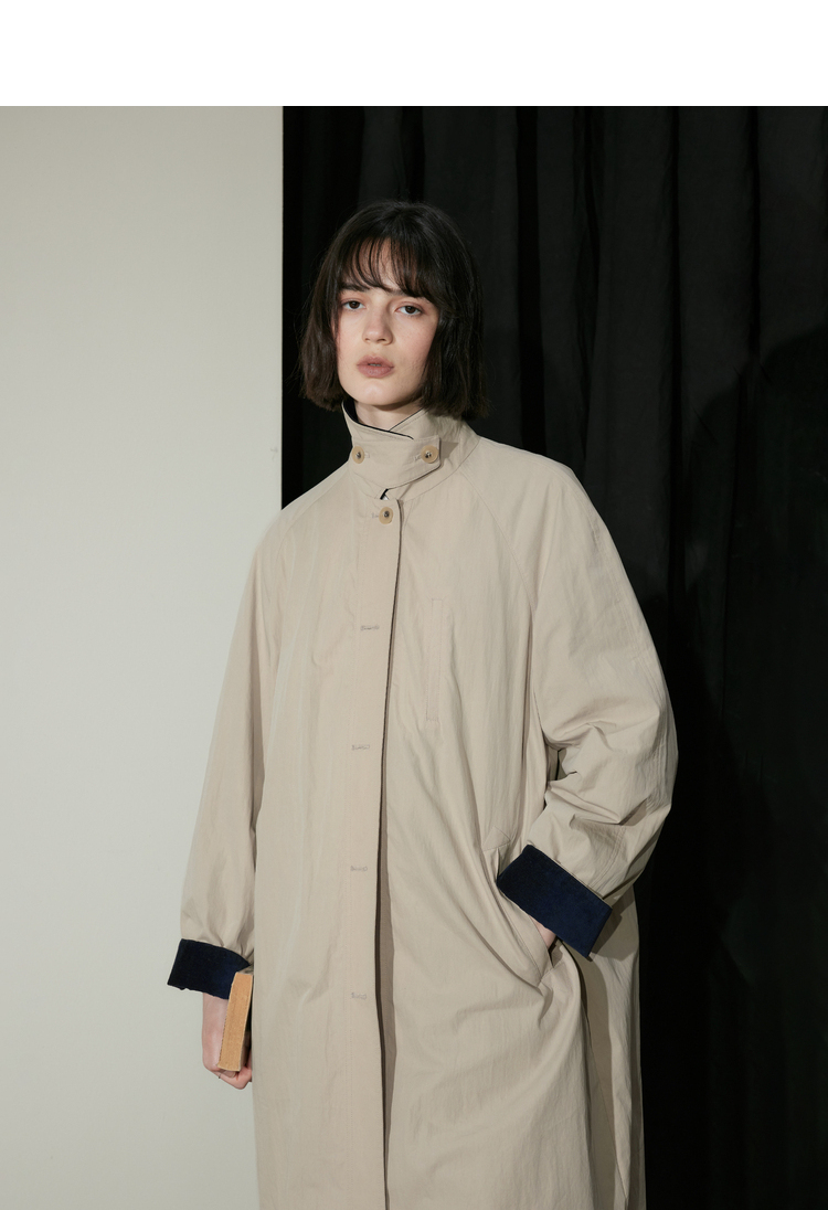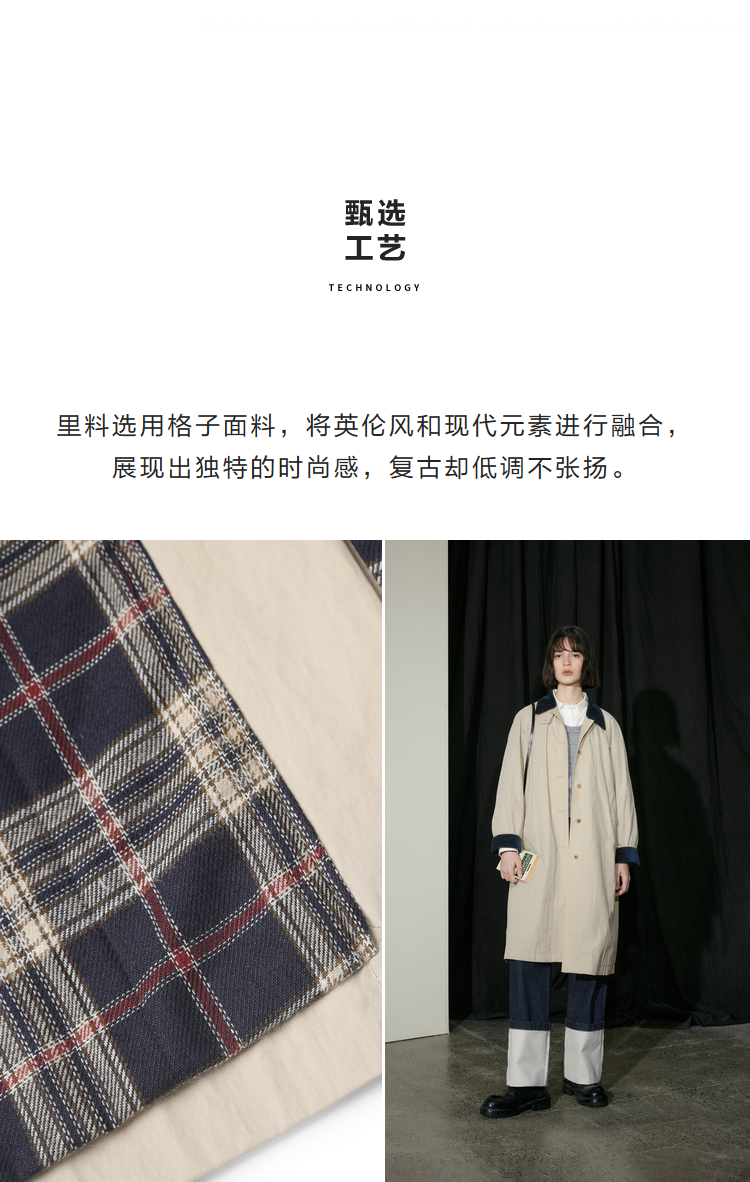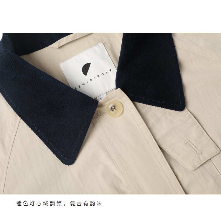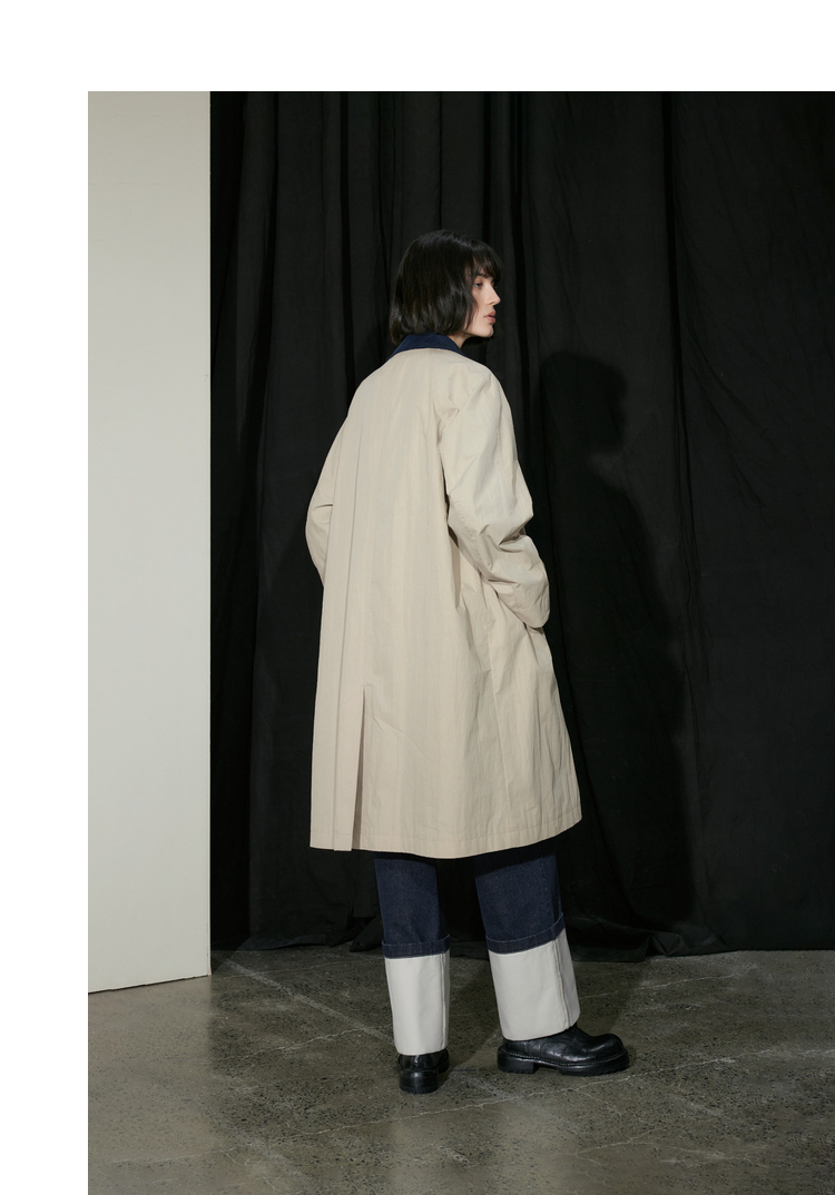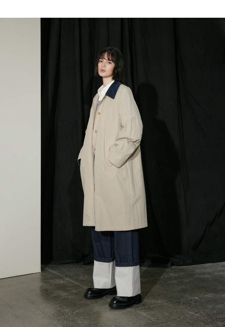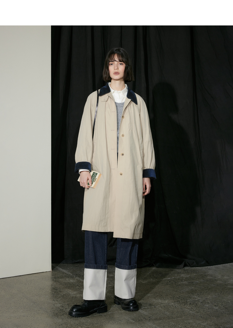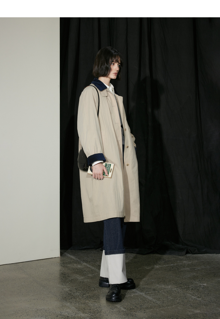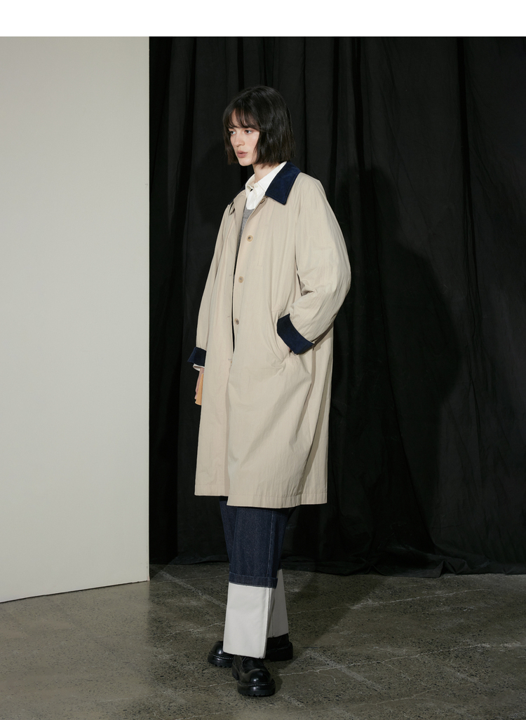 半圆/D24310385/简约撞色英伦长风衣