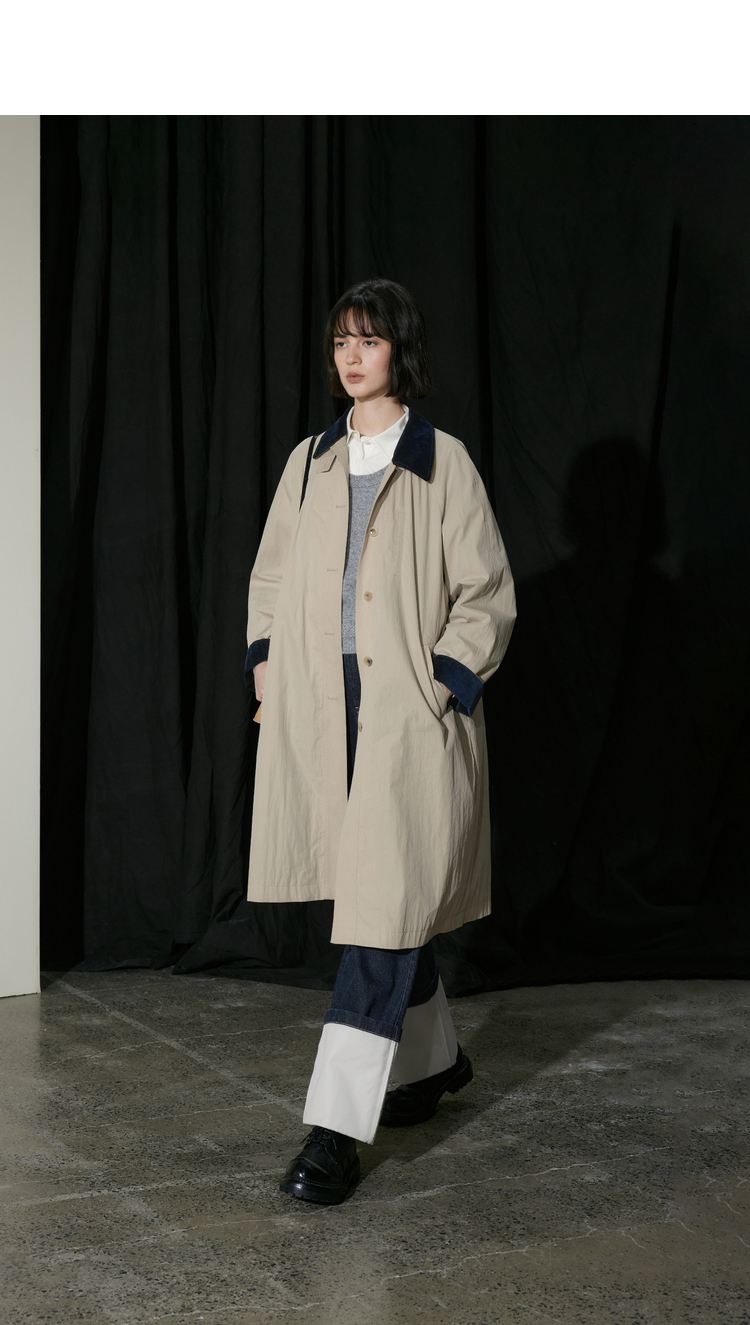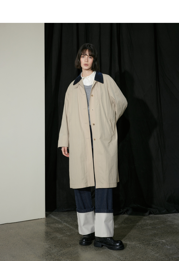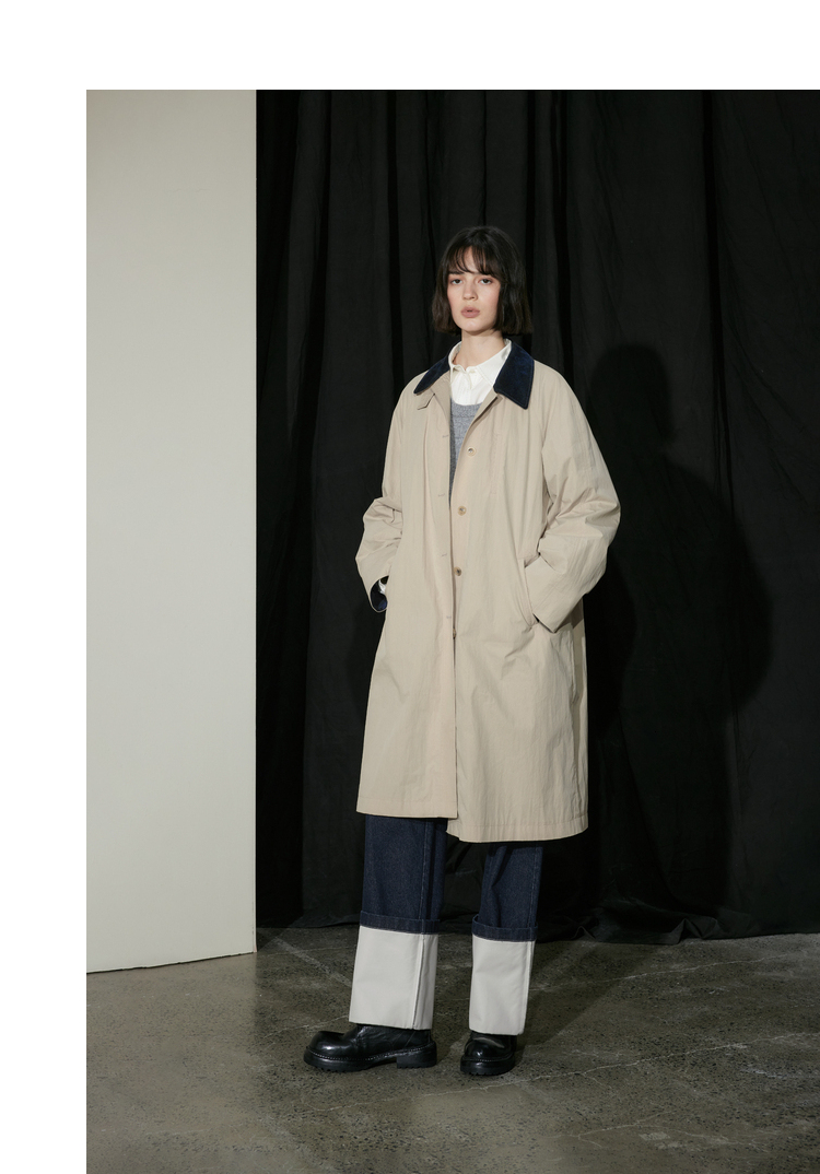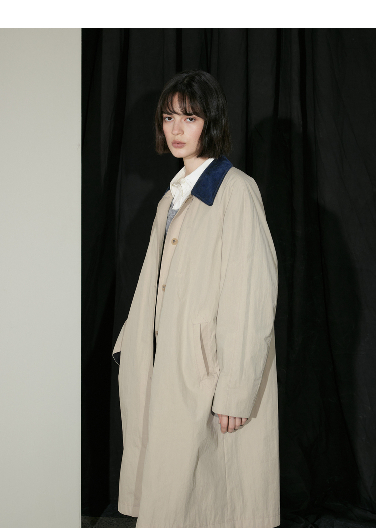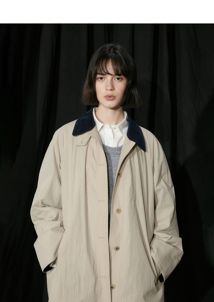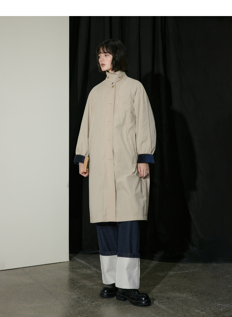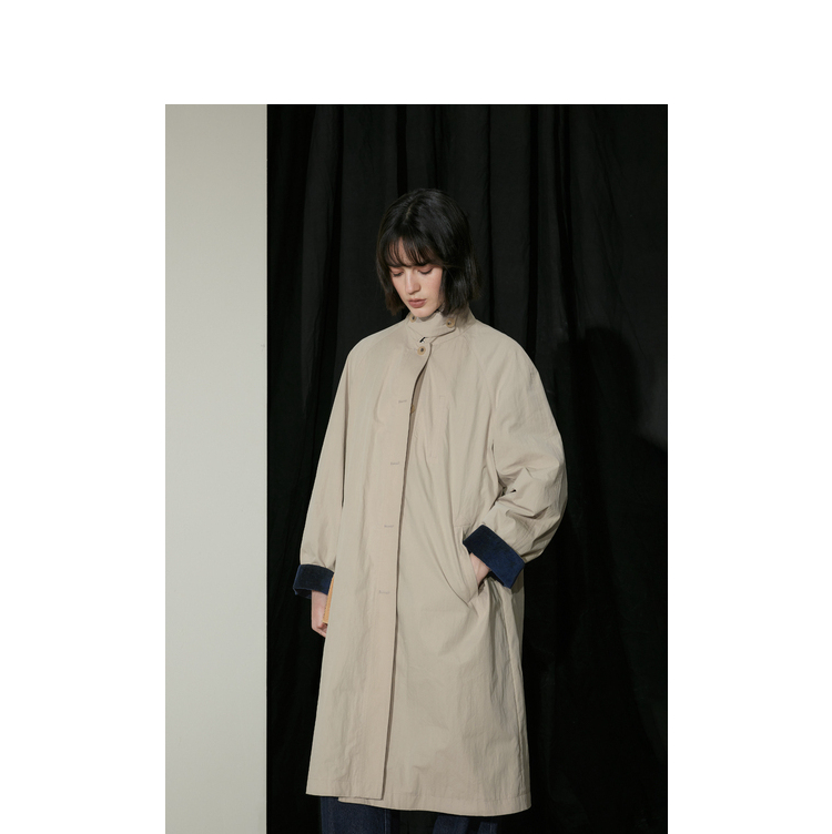 半圆/D24310385/简约撞色英伦长风衣
