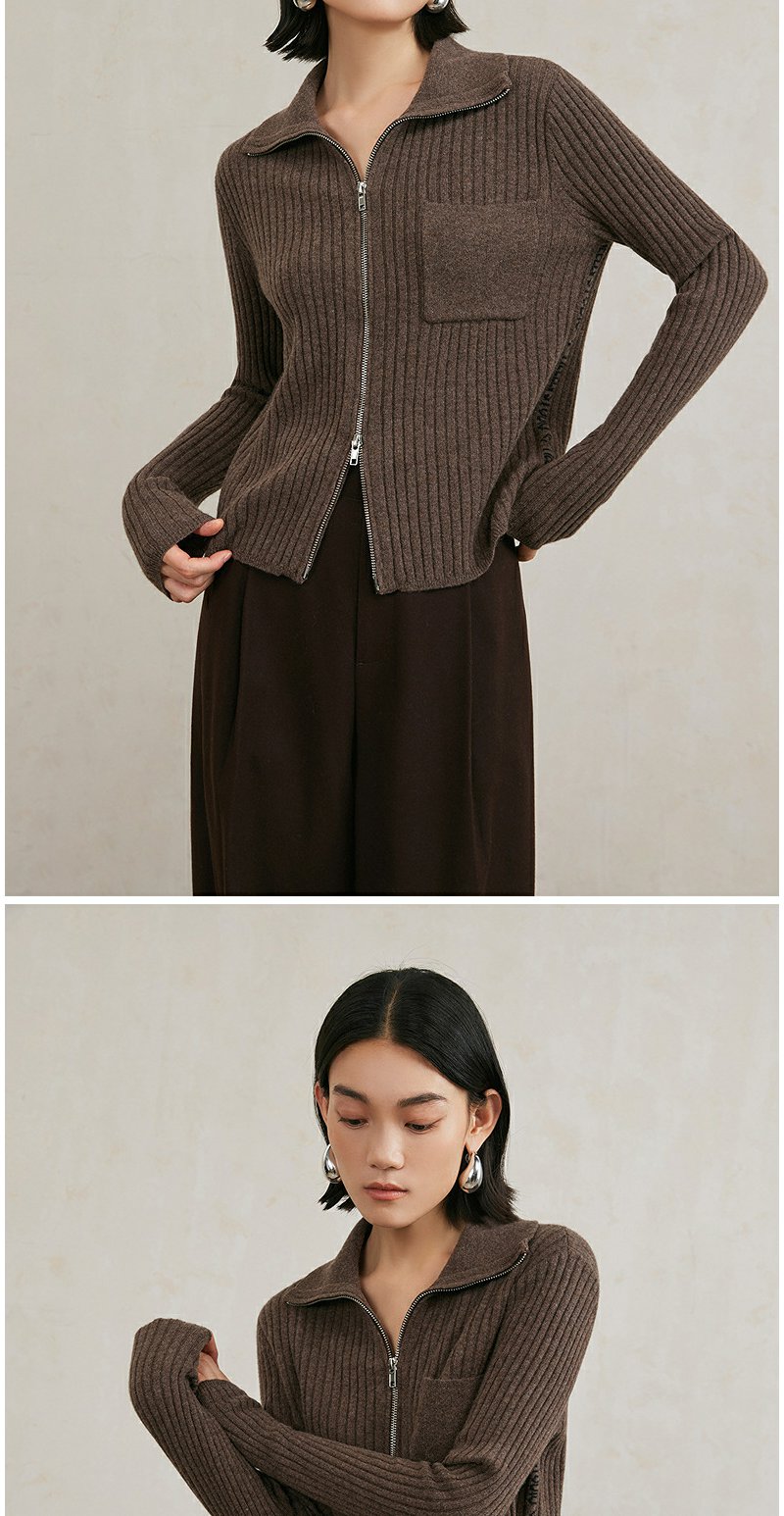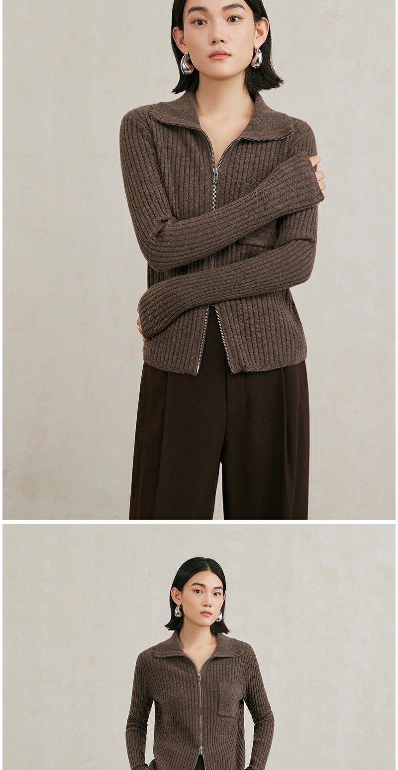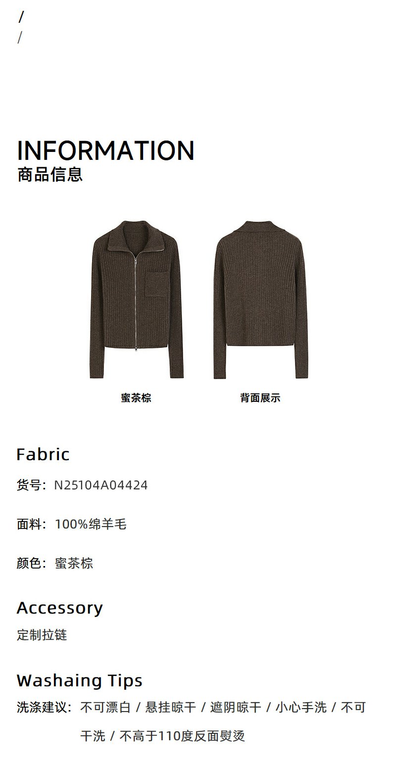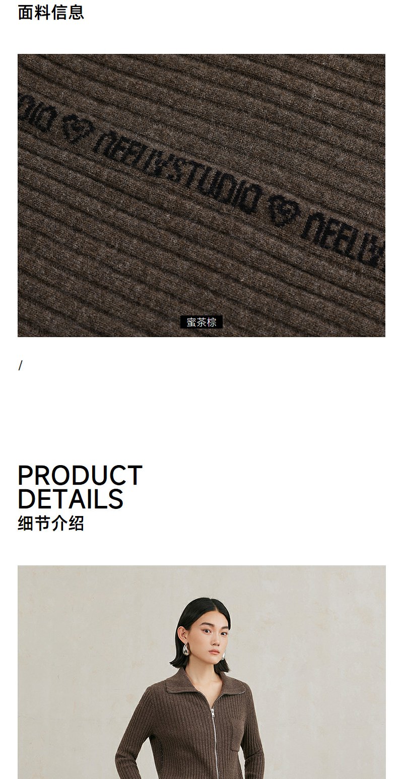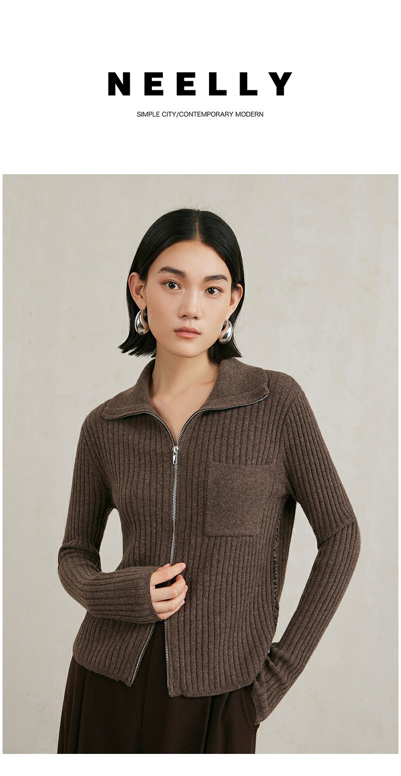 NEELLY纳俪商场同款冬季新款绵羊毛肌理感修身针织开衫女毛衣外套N25104A04424
