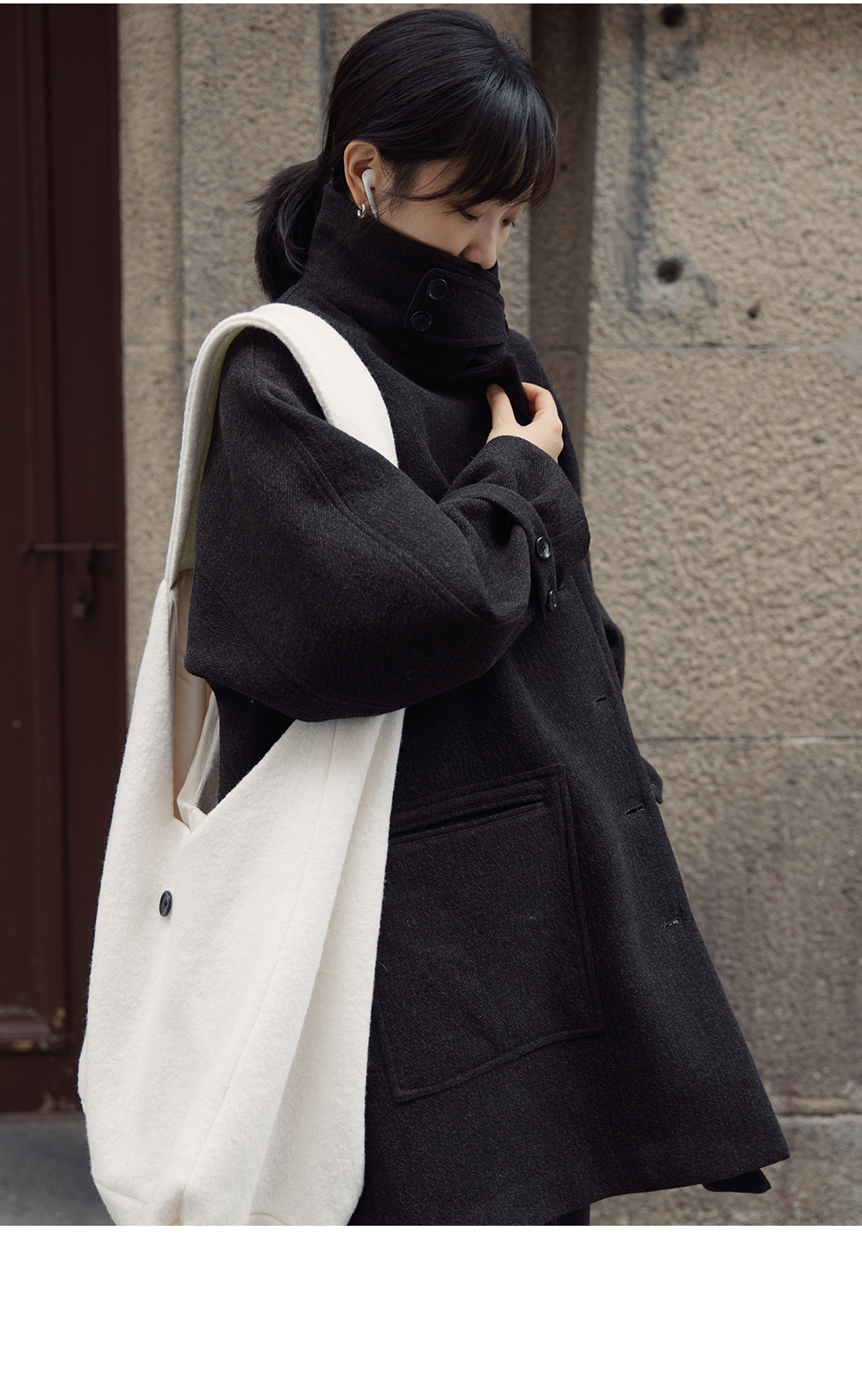 步履不停/4D52019C/大容量通勤逛街休闲针织毛呢单肩斜挎包