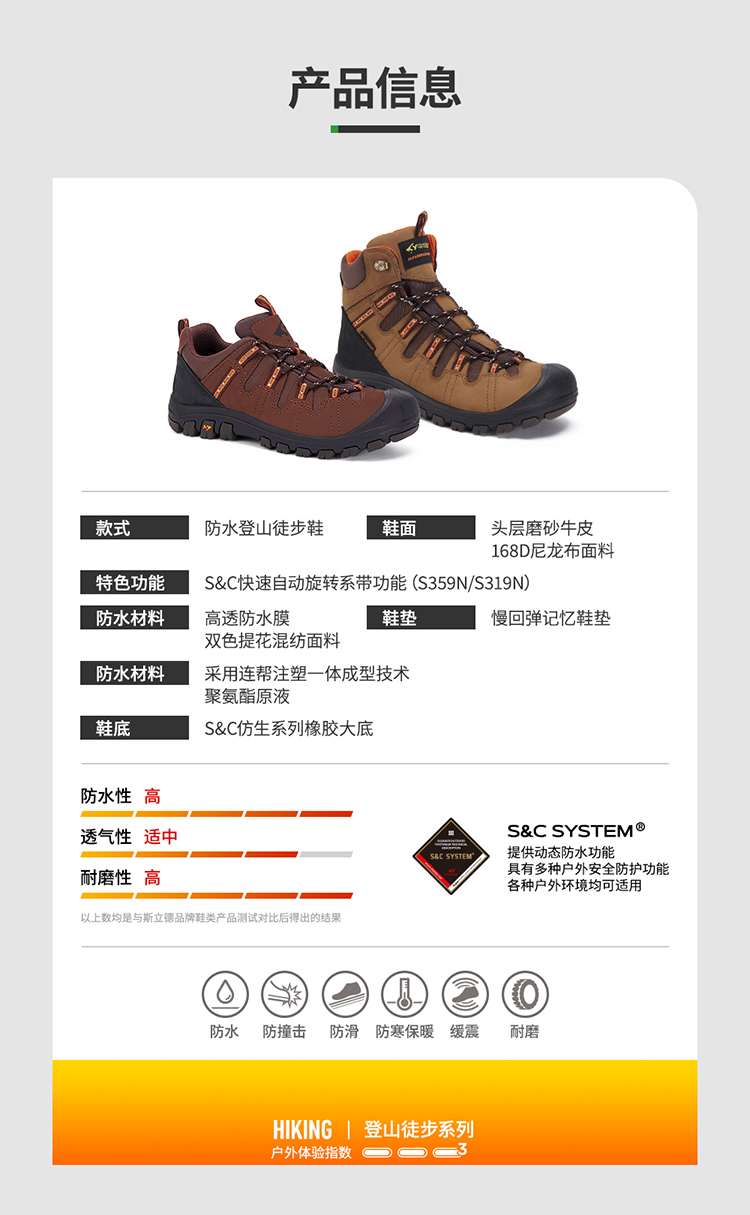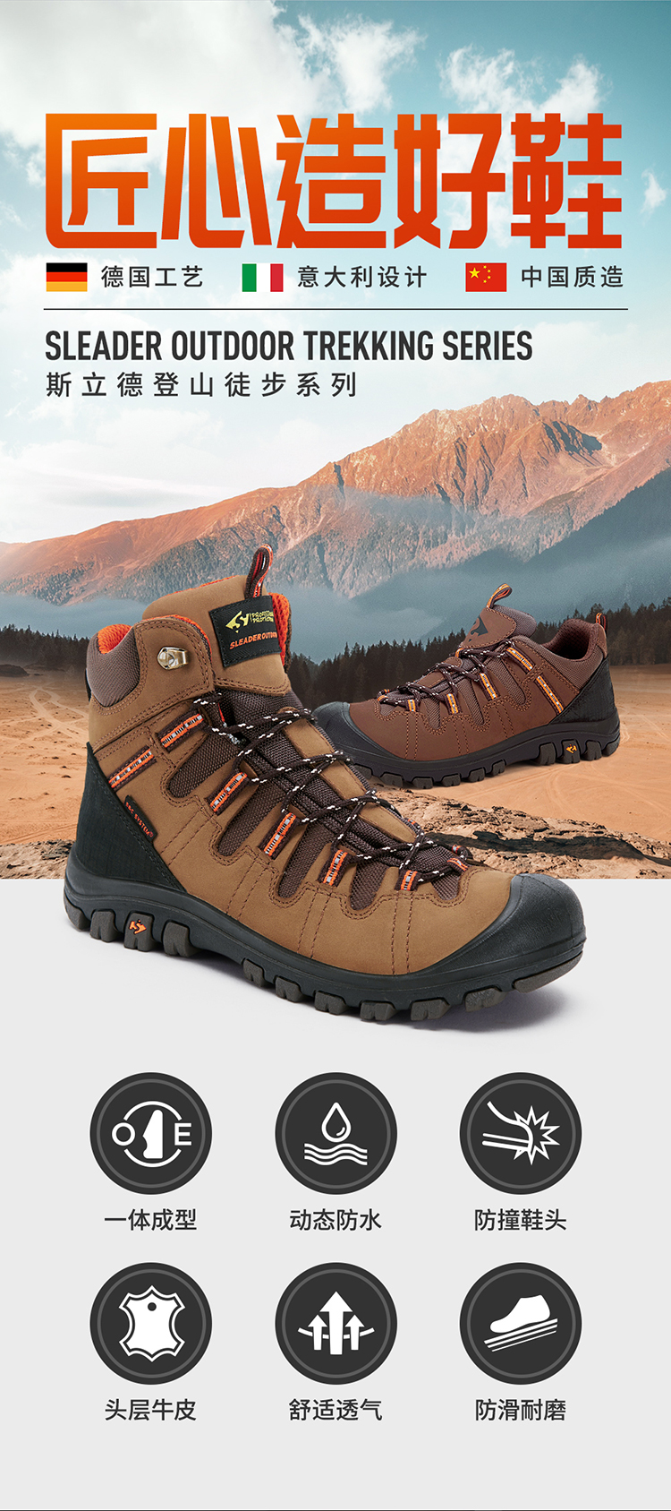 SLEADER(斯立德)梦想S359N中高帮登山防滑鞋男女 轻量舒适防水透气徒步鞋 梦想S359N