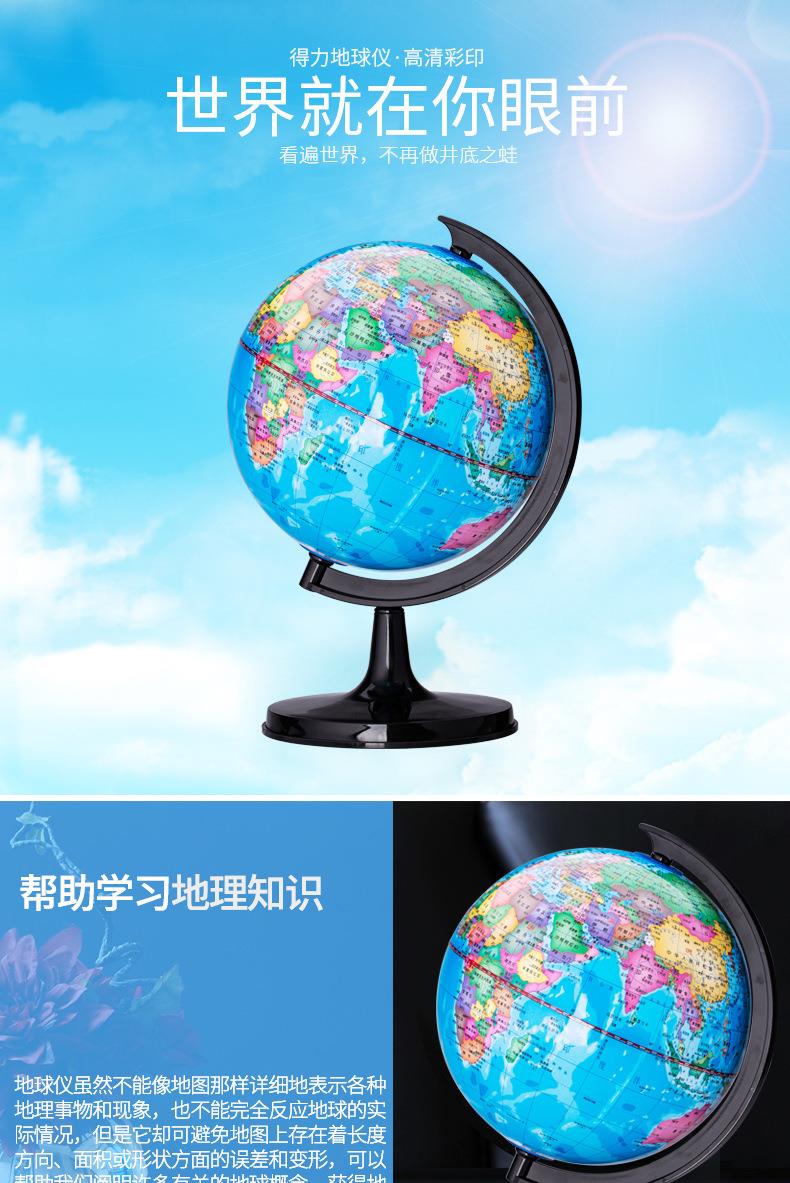 得力3031桌面迷你地球仪办公学生地理教学用品直径10.6cm批发