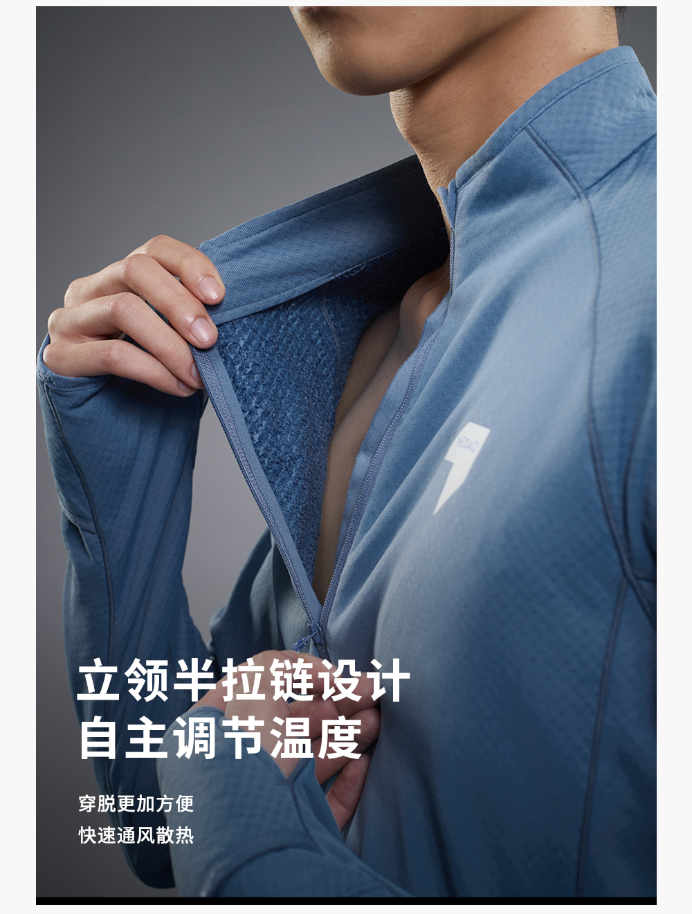 内道聚能卷半拉链长袖男士秋冬透气贴身层跑步训练长袖T恤