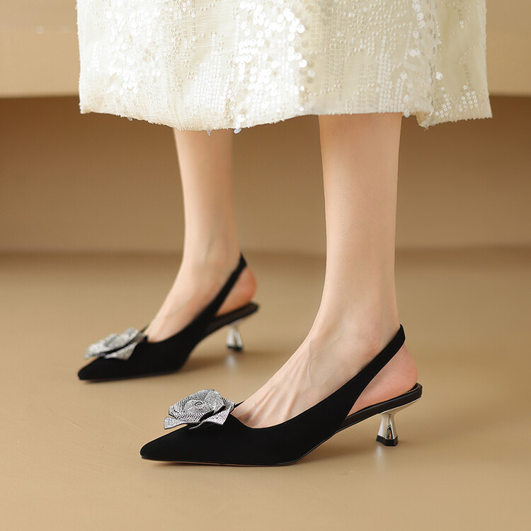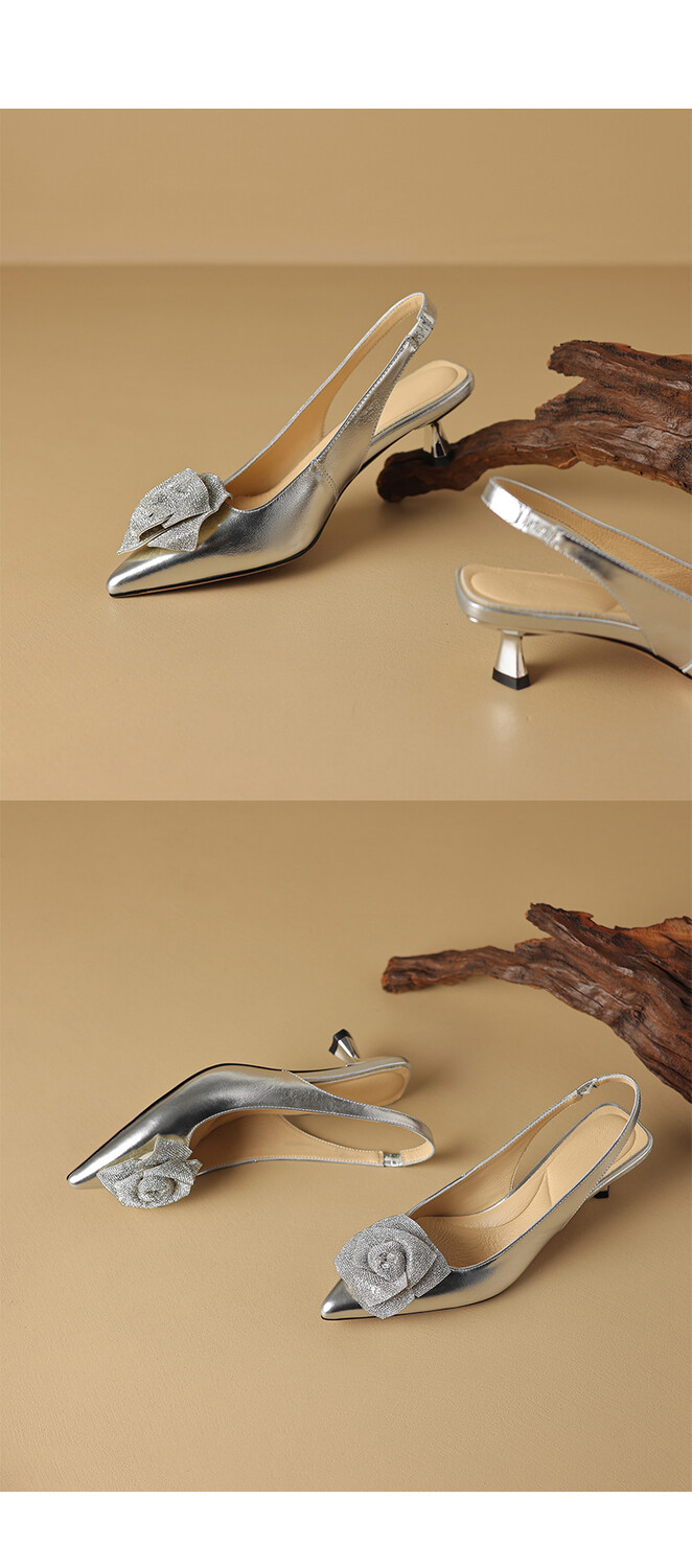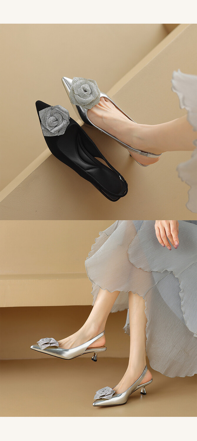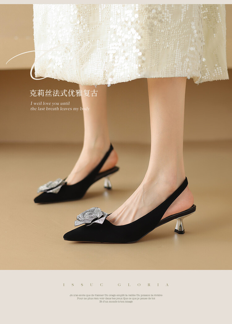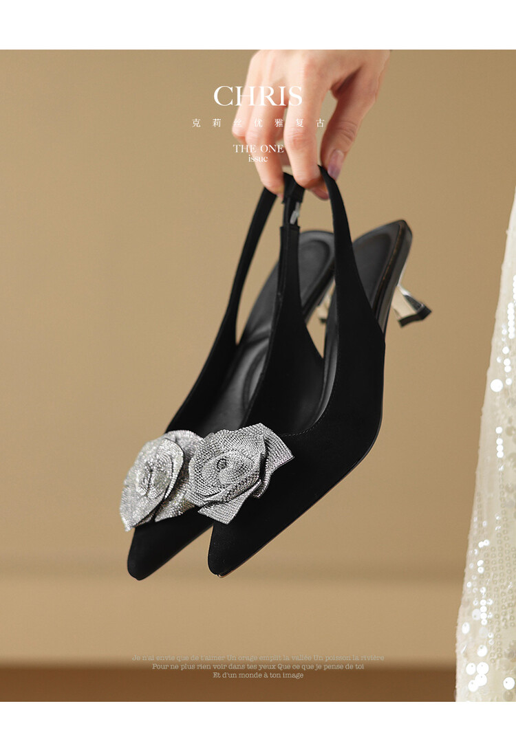 【预售5天】真皮玫瑰水钻,浅口尖头低跟凉鞋NDXC&6386