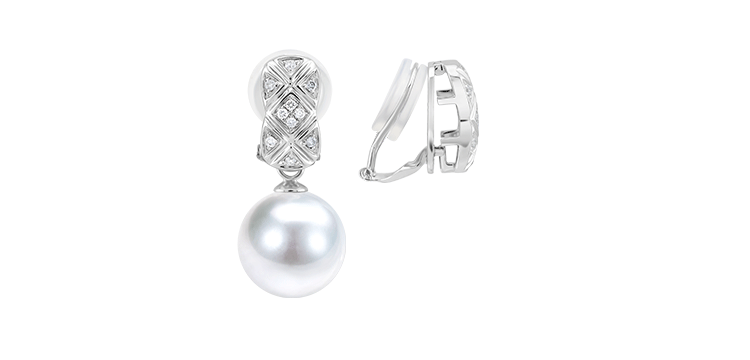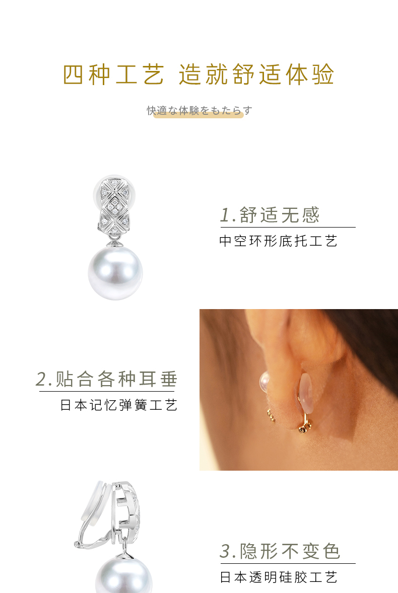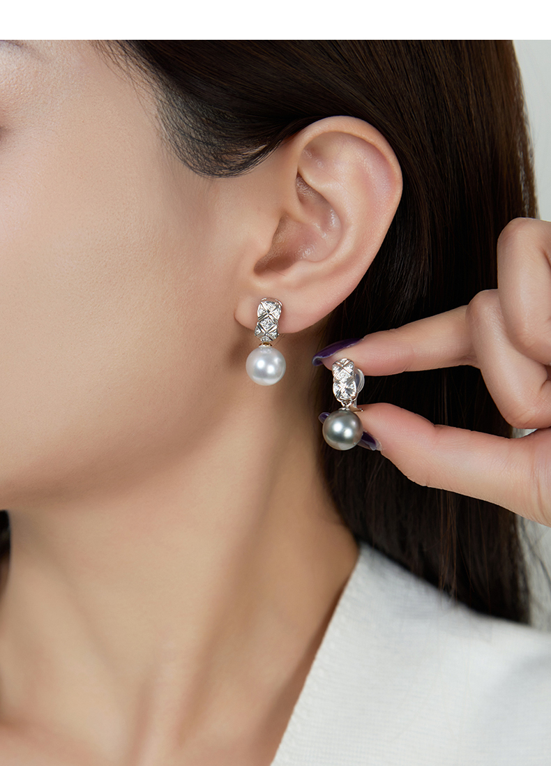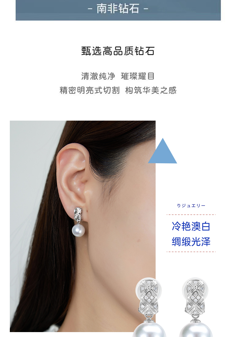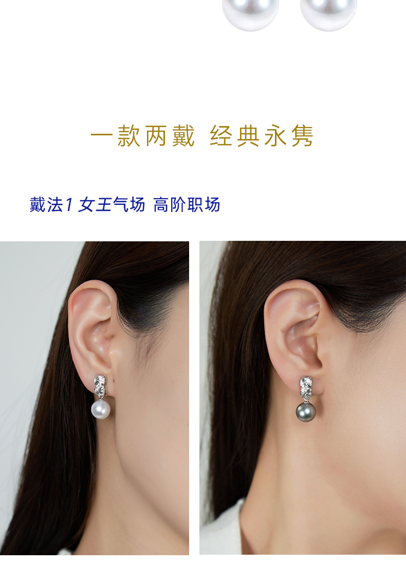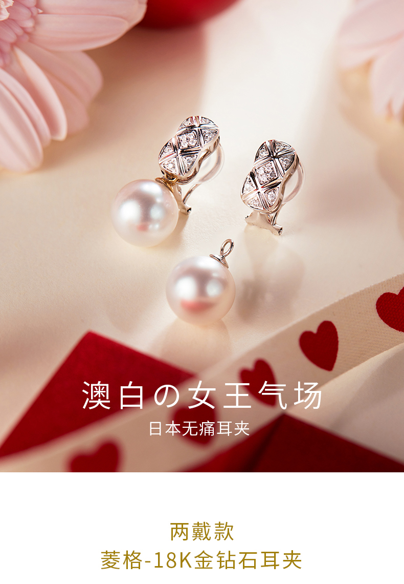 【天猫同款】 悦甄 18k金两戴款珍珠钻石耳夹 菱格