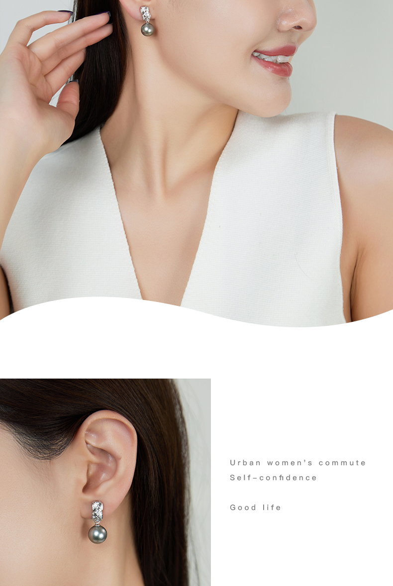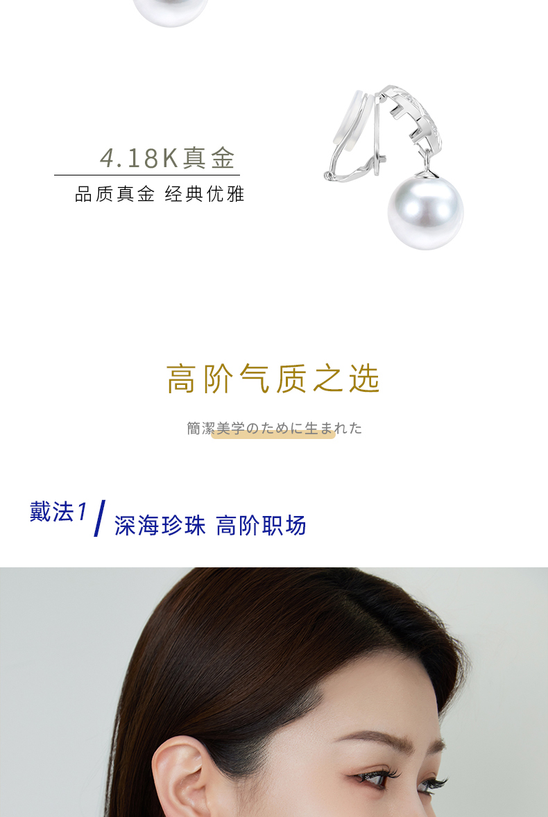 【天猫同款】悦甄 18k金大溪地铂金灰珍珠耳夹 classic