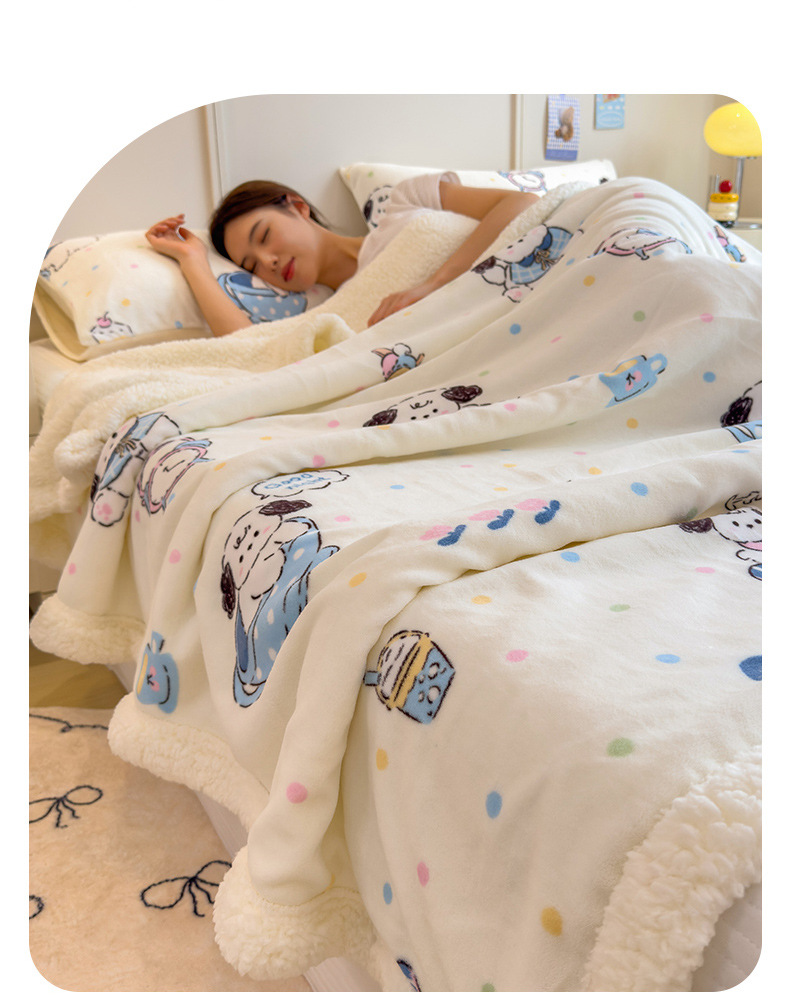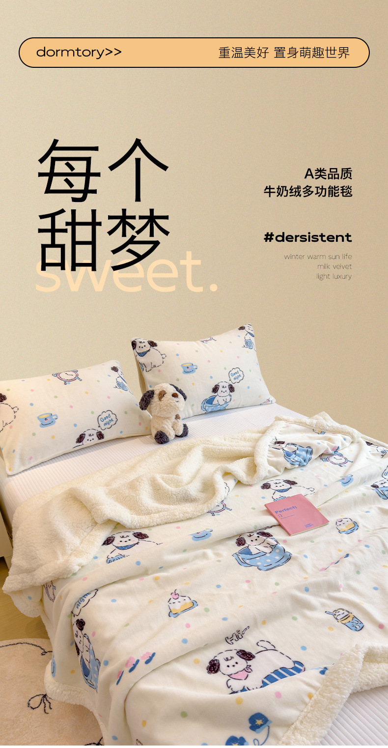 秋冬季【加厚卡通风学生宿舍家用牛奶绒多功能毛毯午睡毯沙发盖毯