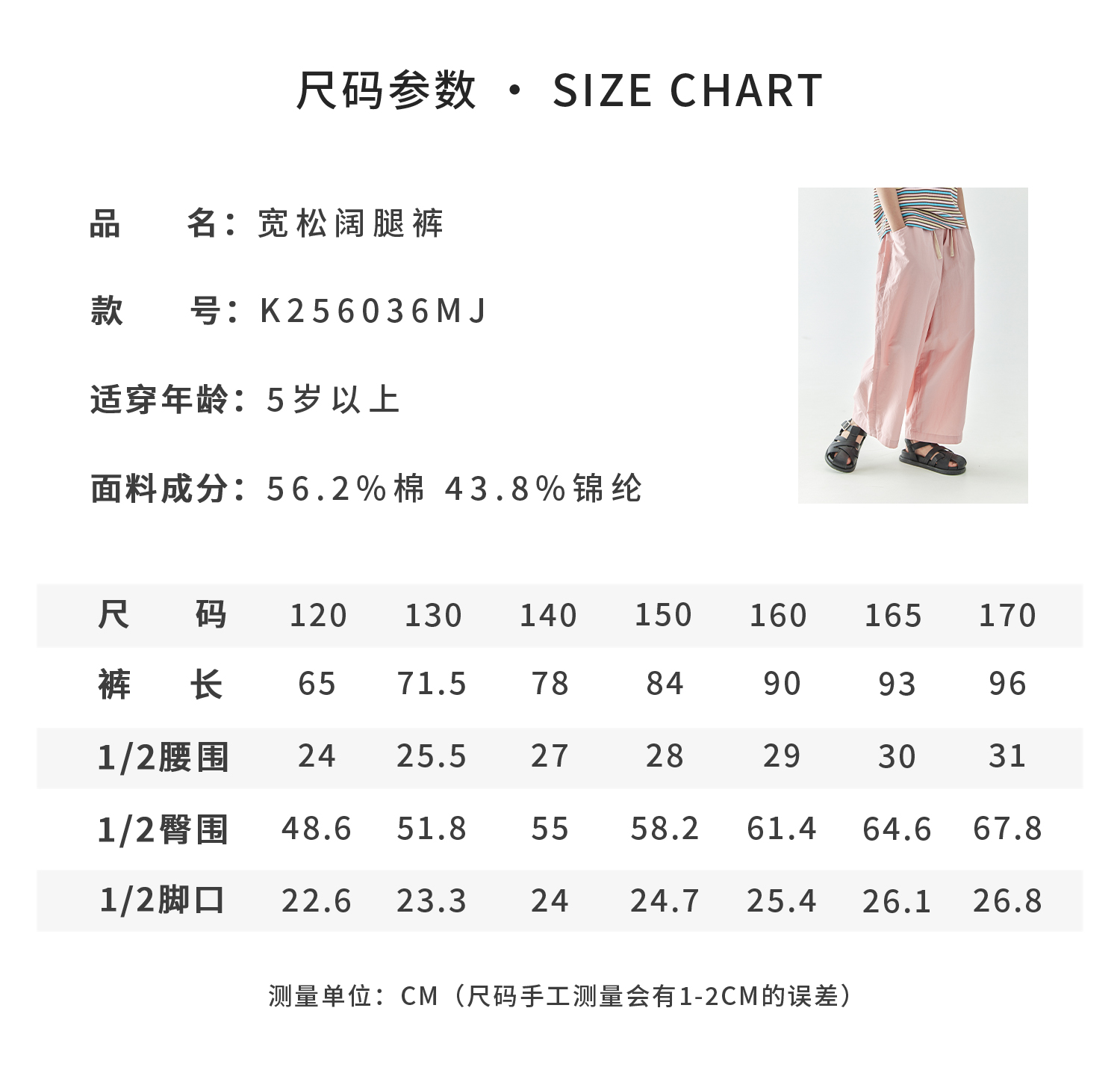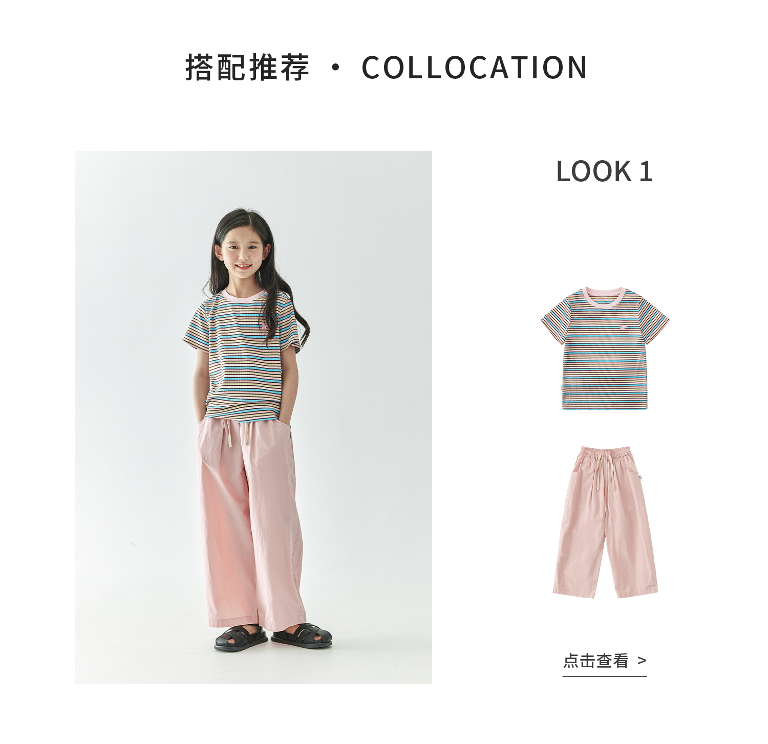 【代发】女款宽松阔腿裤 棵初2025年春夏新款童装宽松随性阔腿裤粉色慵懒百搭亲子休闲裤粉色