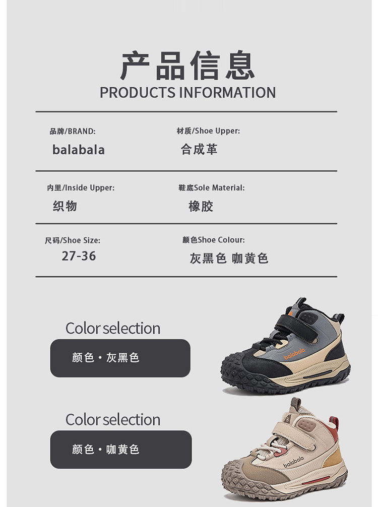 巴拉巴拉童鞋儿童户外鞋男女童2025年新款秋冬透气鞋子舒适时尚