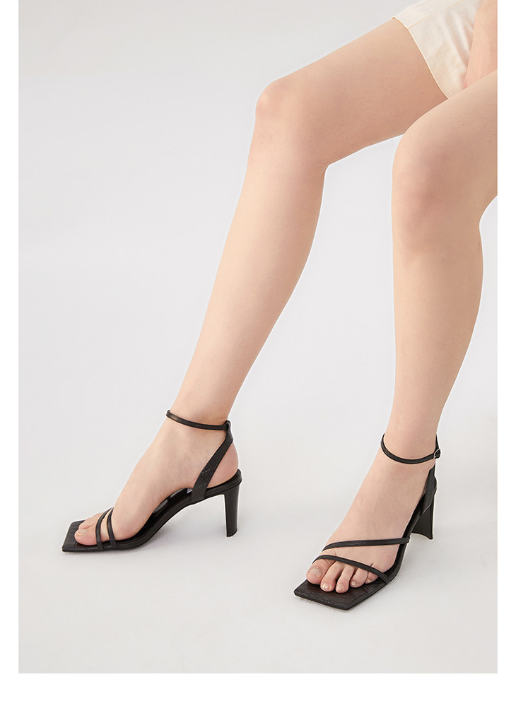 lost in echo 设计师脚环细带方头凉鞋 复古通勤高跟鞋