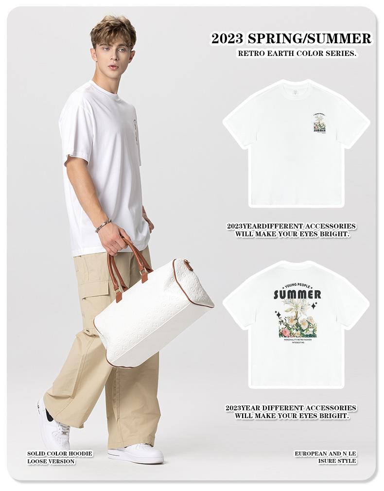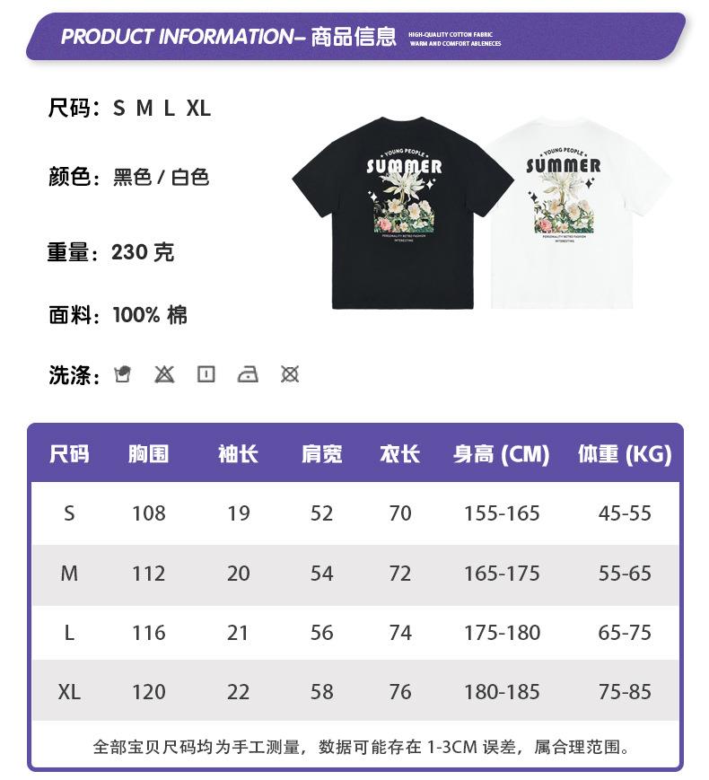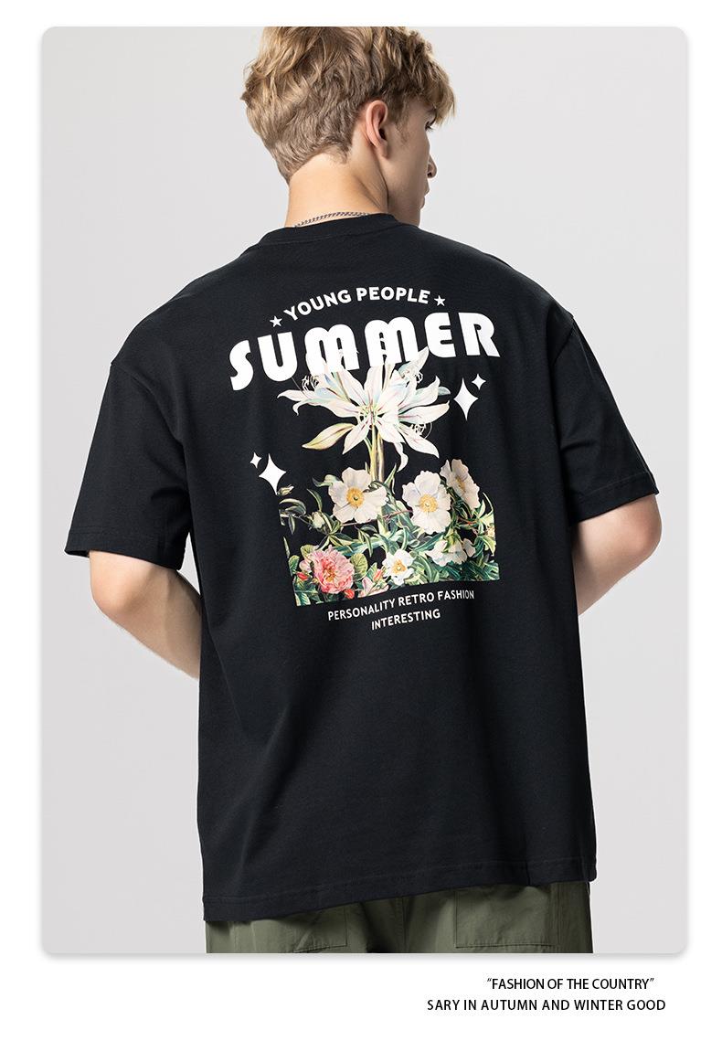 RS男装|2023夏季230g鲜花数码直喷印花短袖复古风欧美潮牌男生T恤