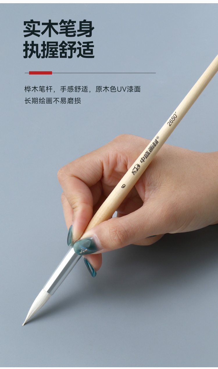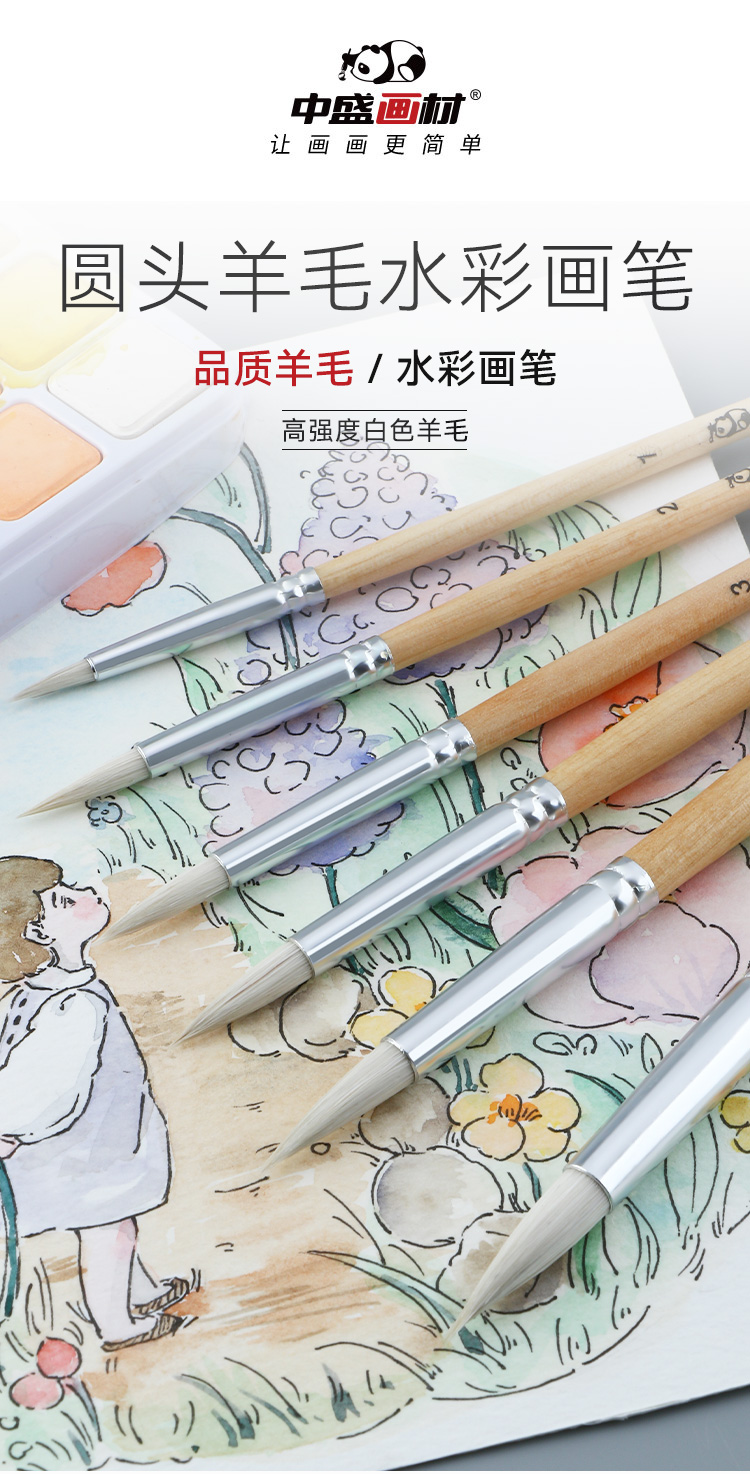 中盛画材尖头水彩笔油画笔圆头羊毛油画画笔水粉笔颜料手绘绘画笔2650