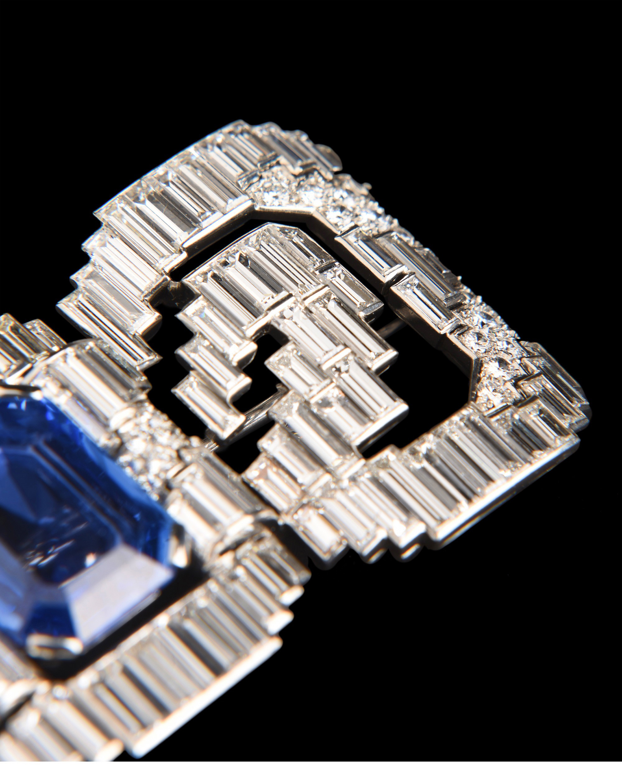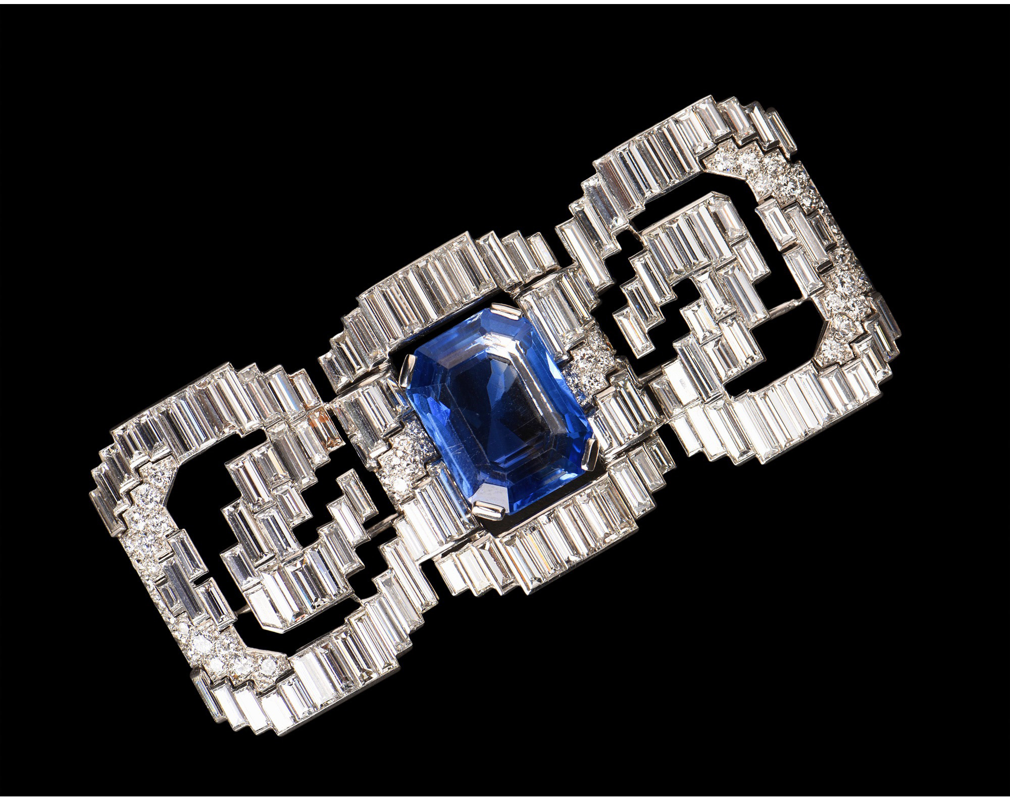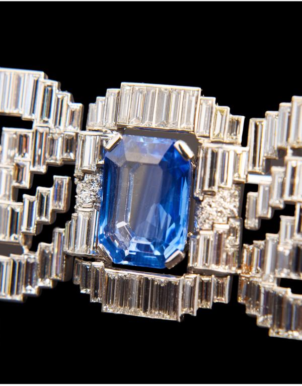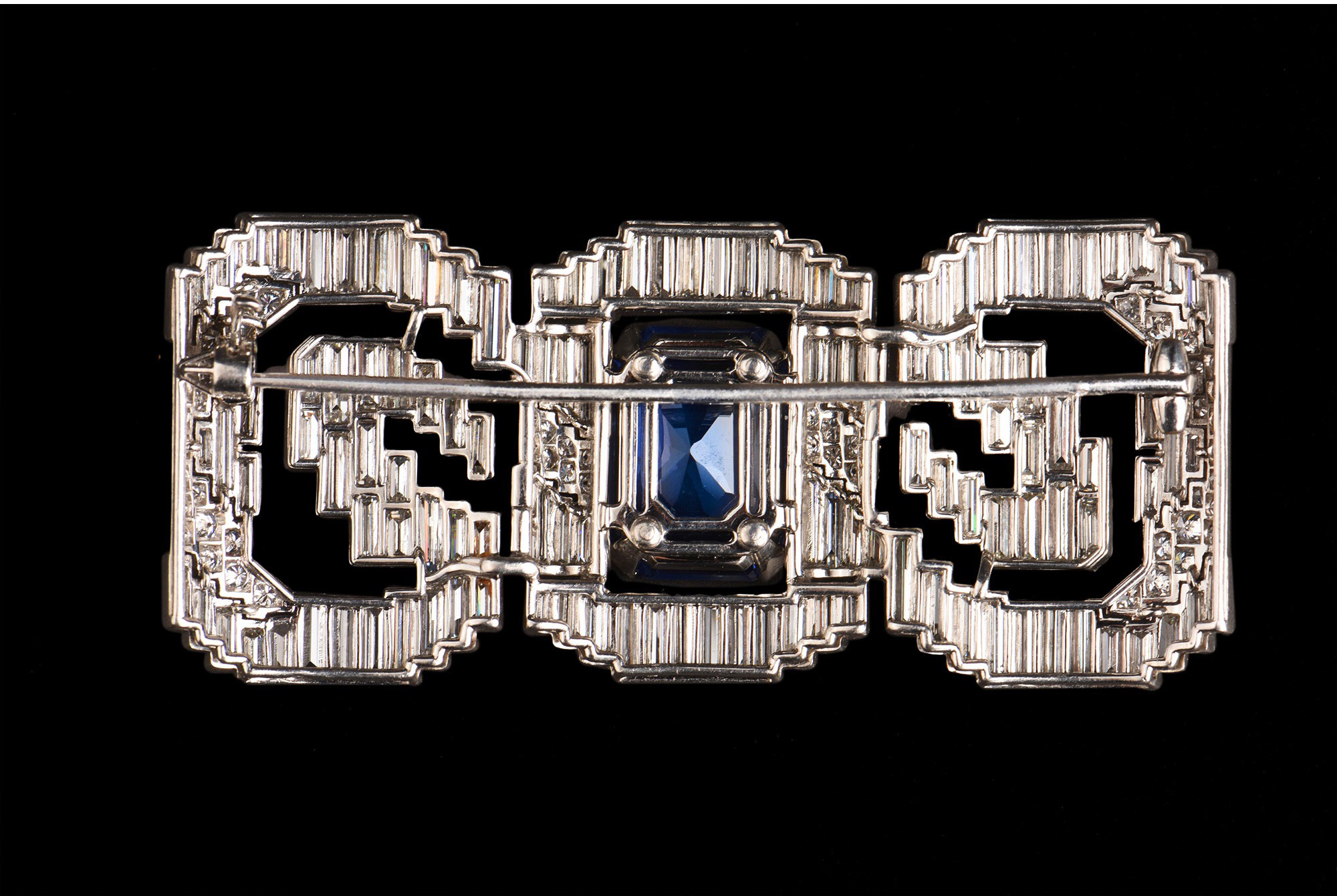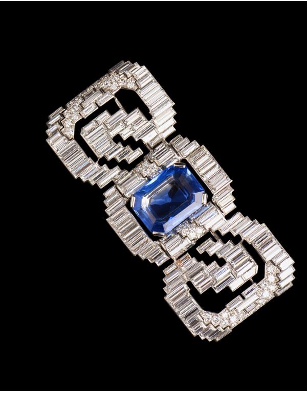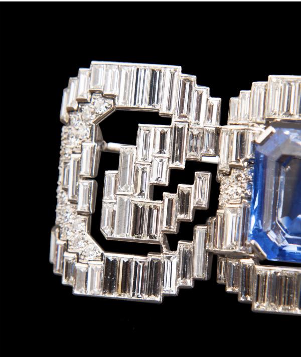 独角鹿西洋古董珠宝法国铂金镶钻石斯里兰卡无烧蓝宝石蝴蝶结胸针