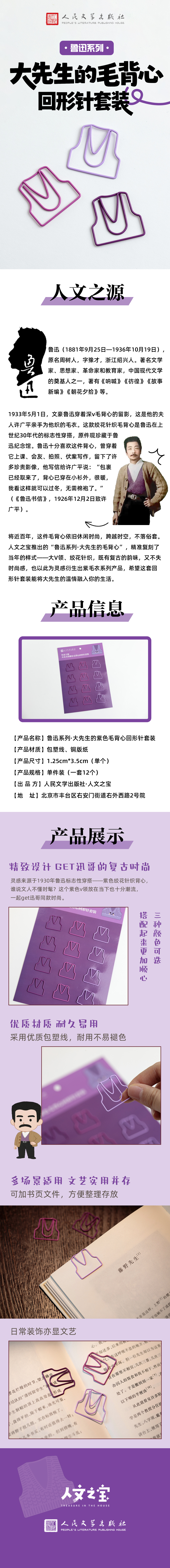 【人文之宝】鲁迅系列 · 大先生的紫色毛背心回形针套装