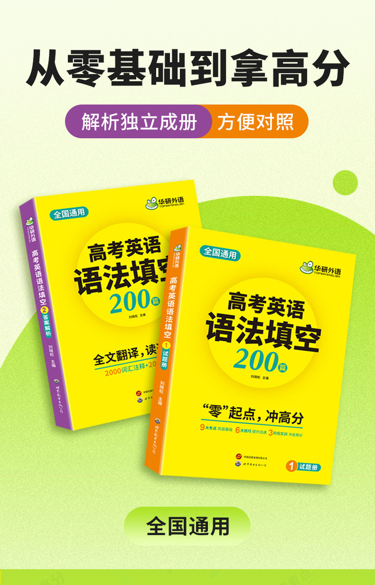 华研外语 2026高考英语语法填空200篇 适用新高考专项训练 必刷题 两分册装 全国通用 基础考点提分技巧 真题单句填空训练 全文翻译 词汇注释 难句分析 准高三适用