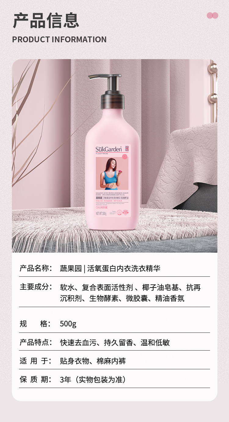 蔬果园活氧蛋白内衣洗衣精华1斤装 松檀精油/青蒿除菌 500g