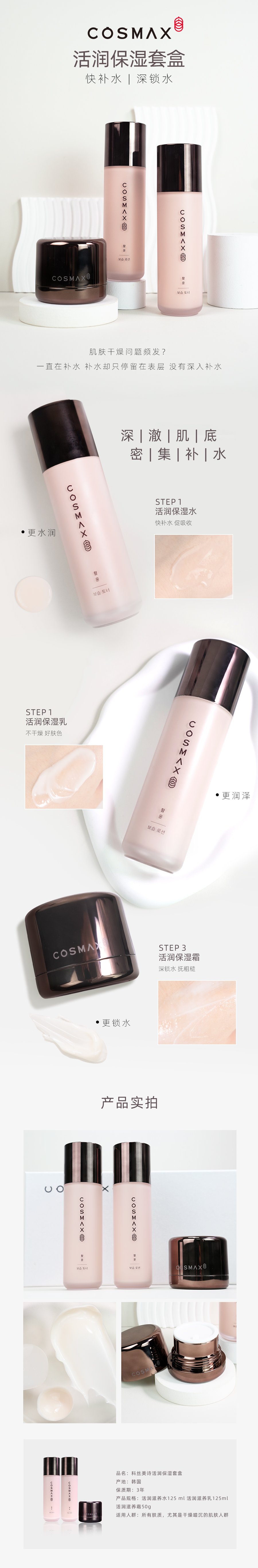 【热卖包邮】COSMAX VIP尊享礼盒 活润滋养三件套125ml+125ml+50g 水乳霜【效期:2026年5月】