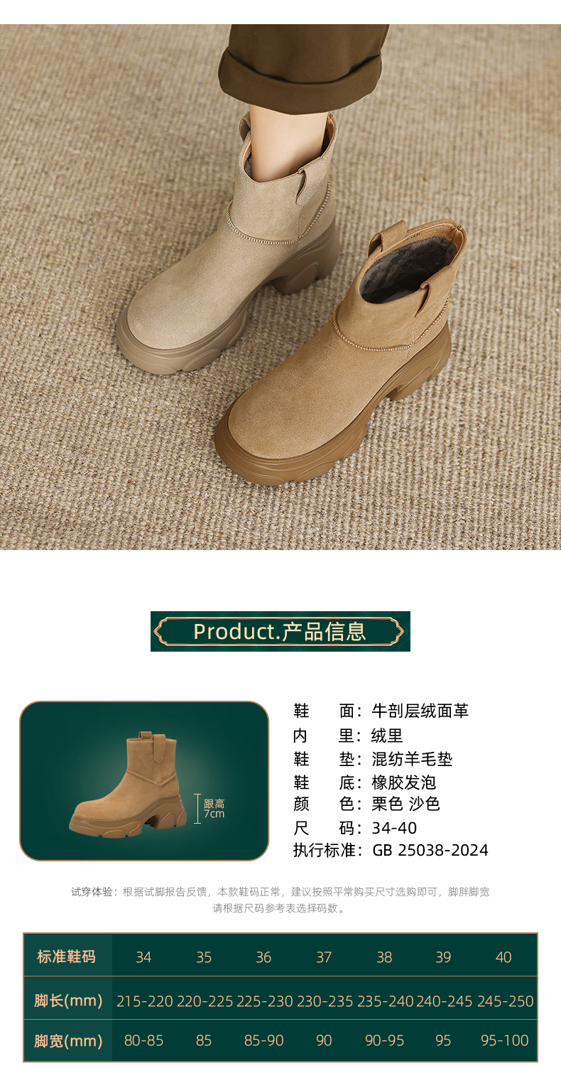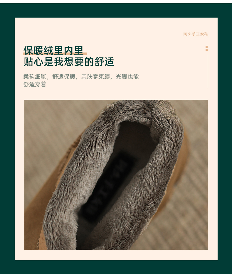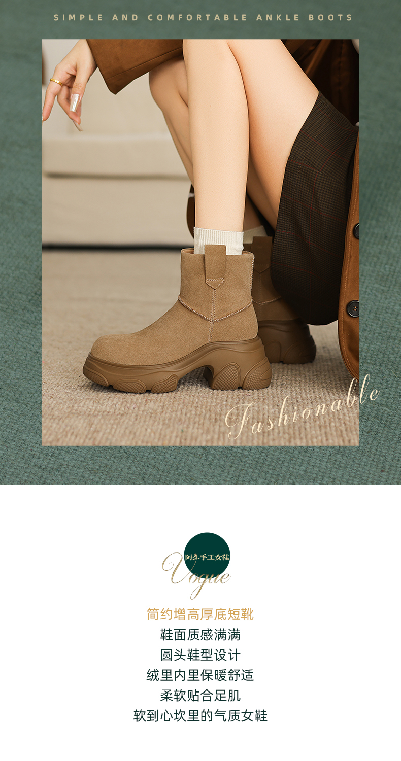 阿么手工女鞋【羊毛】加厚加绒冬季保暖靴子新款洋气女靴秋冬款7CM