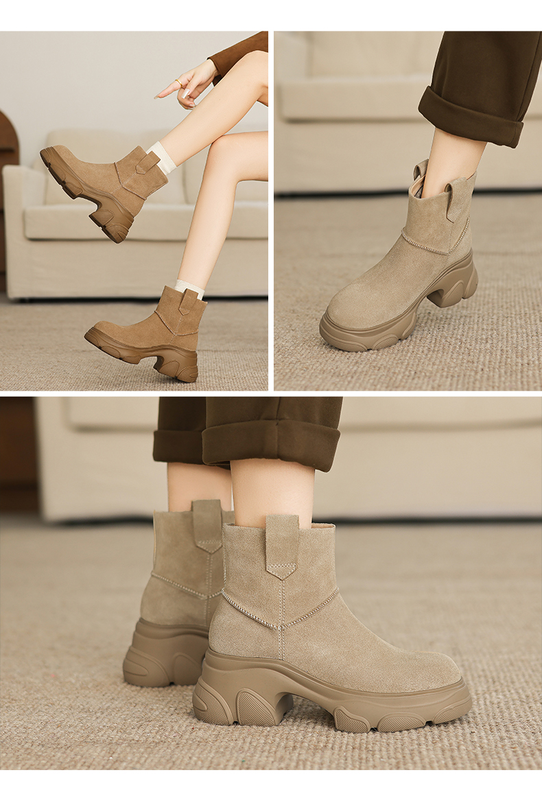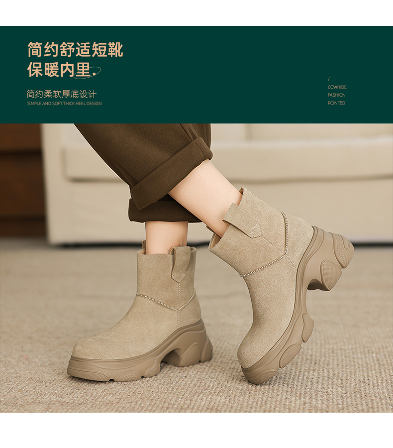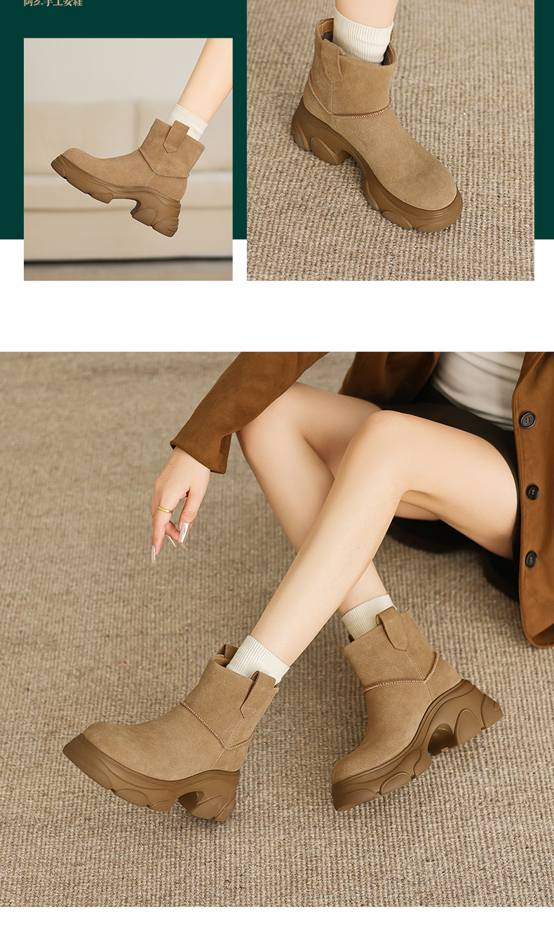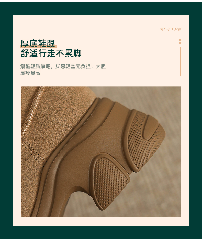 阿么手工女鞋【羊毛】加厚加绒冬季保暖靴子新款洋气女靴秋冬款7CM