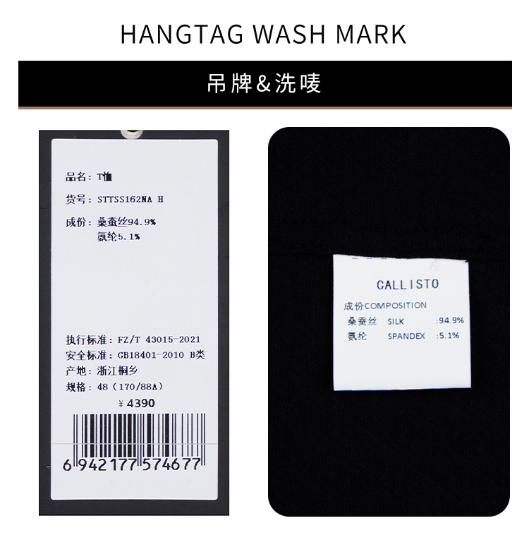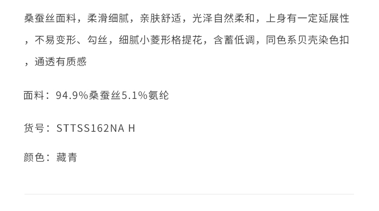 callisto藏青桑蚕丝混纺短袖T恤 STTSS162H