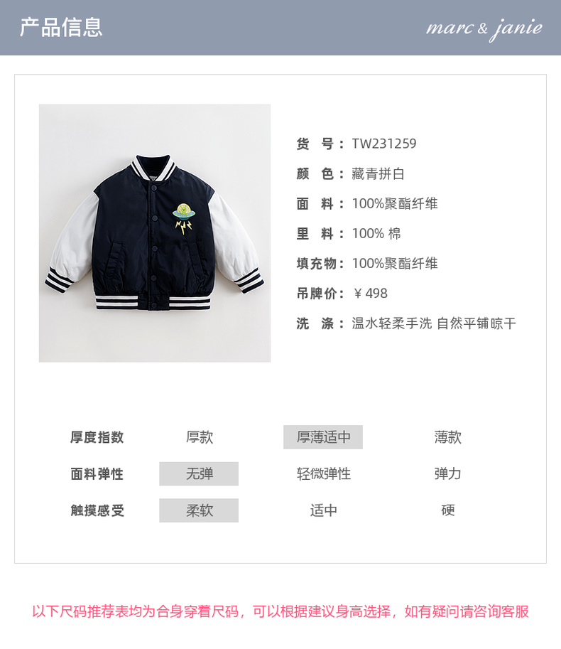 【三防】马克珍妮秋装新款 男童趣味外星人印花棒球服外套231259