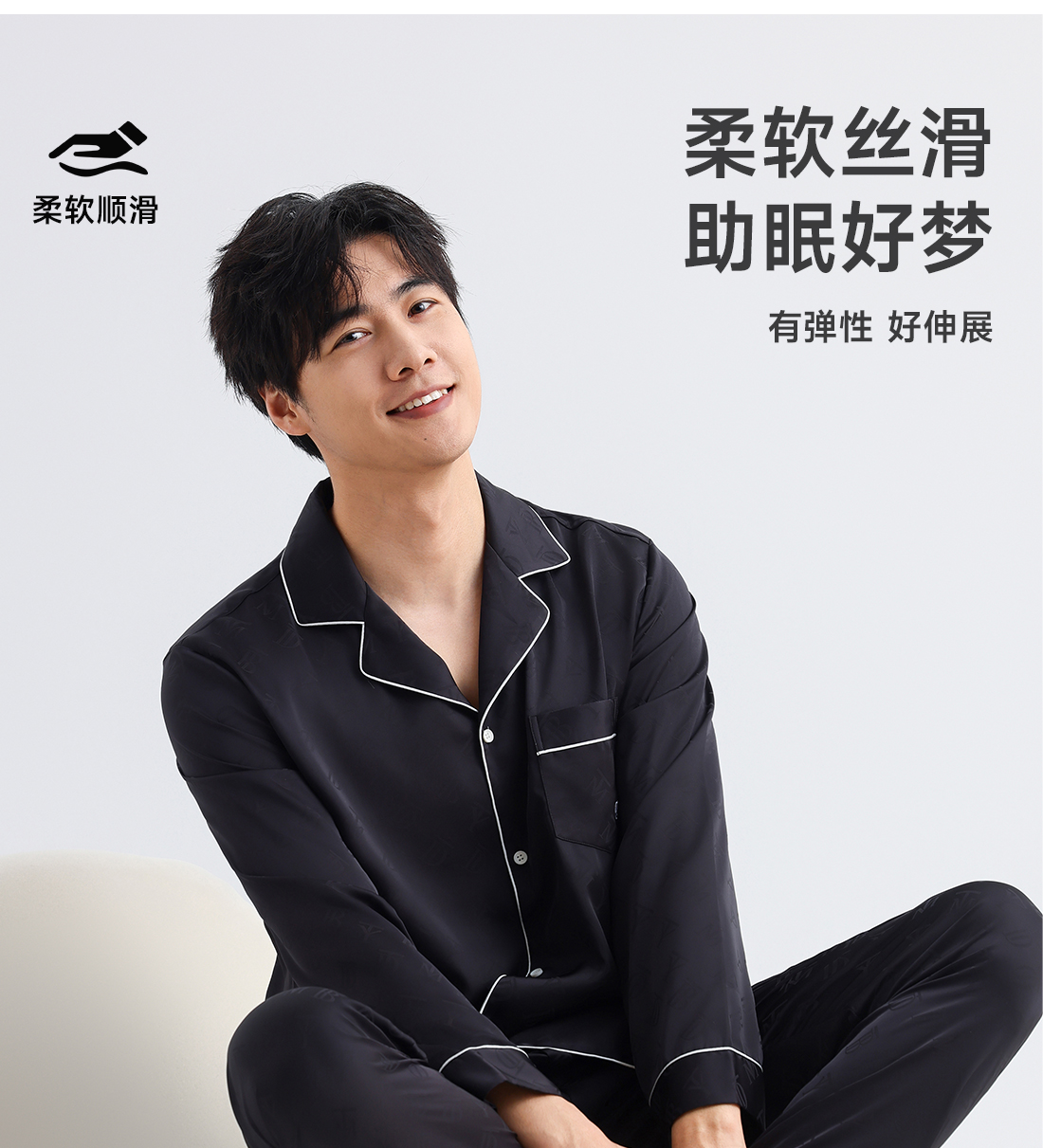 美季美优男士睡衣春秋季2025新款高档防真丝绸四季通用家居服套装