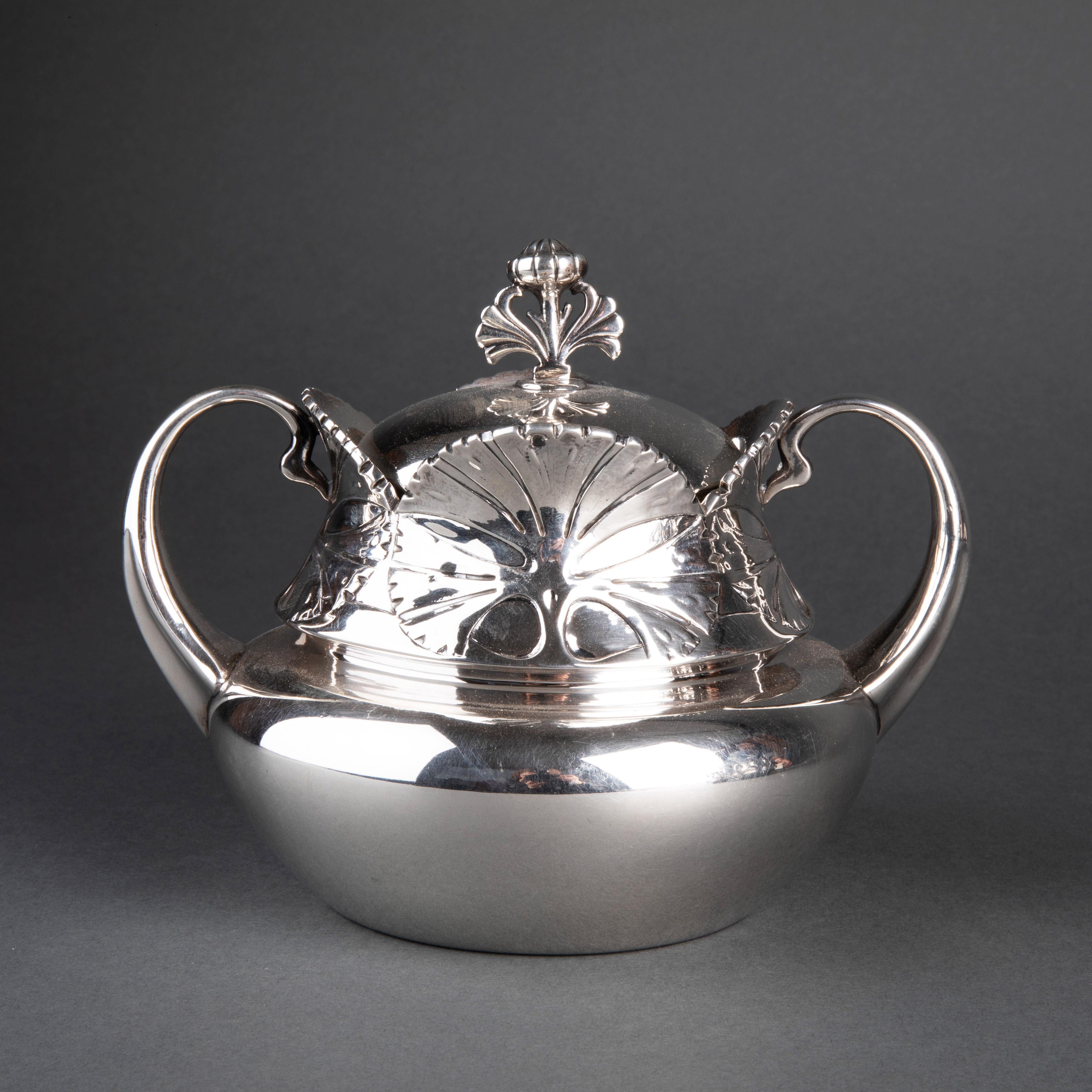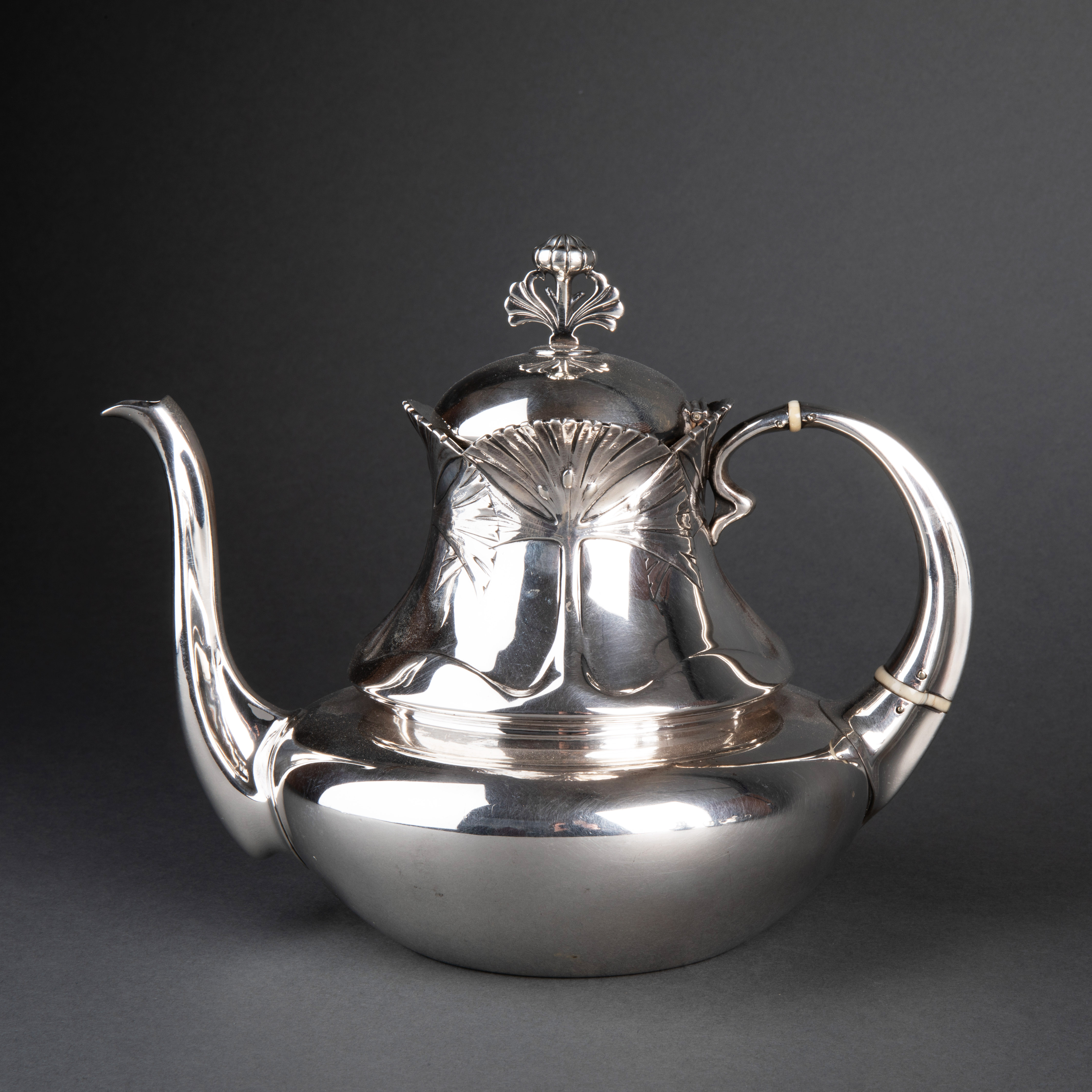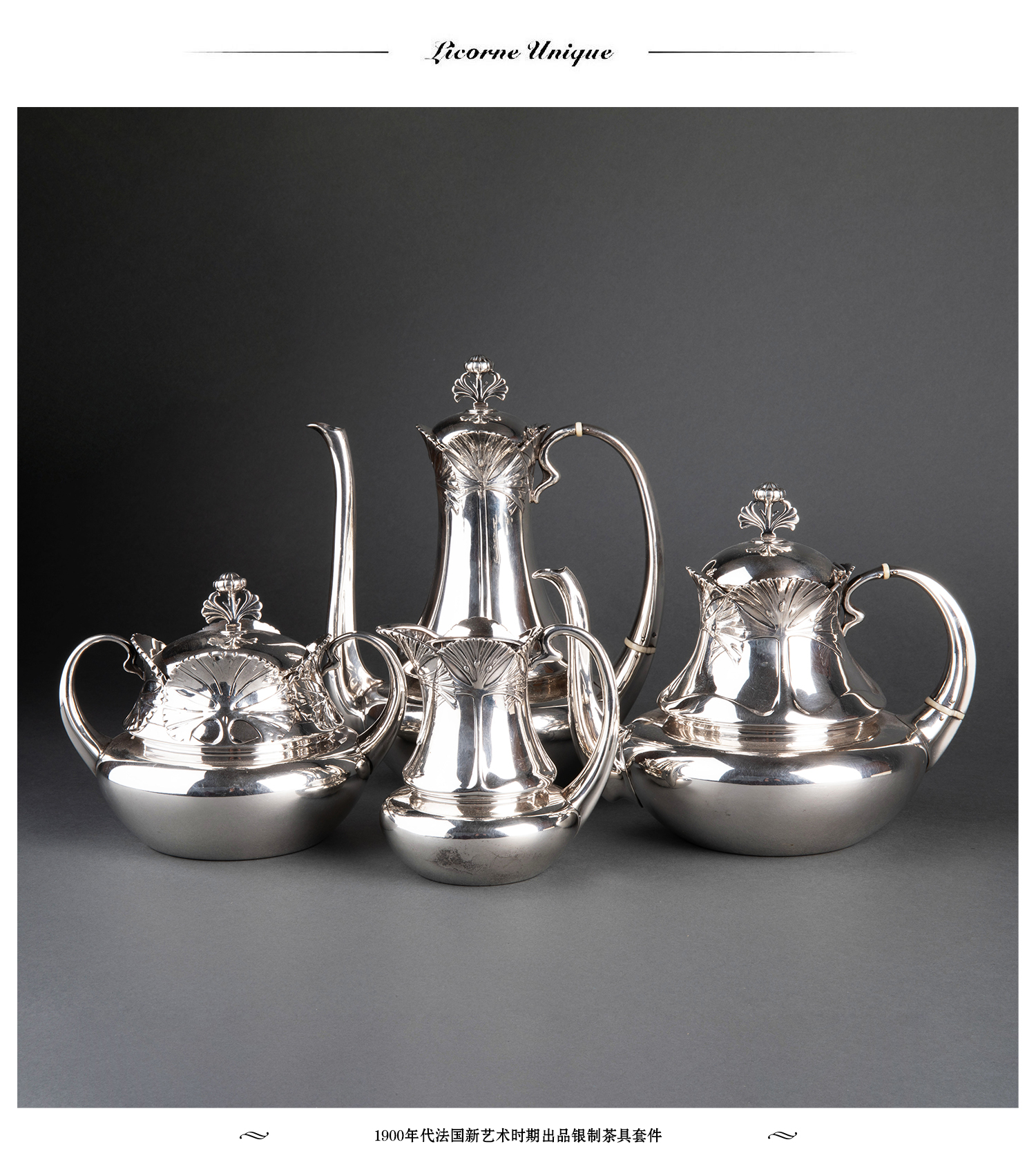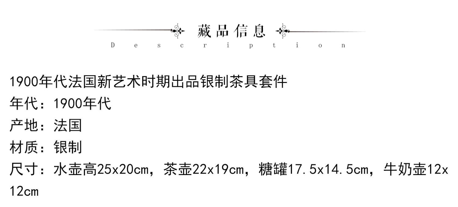 独角鹿西洋古董银器1900年代法国新艺术时期出品银制茶具套件