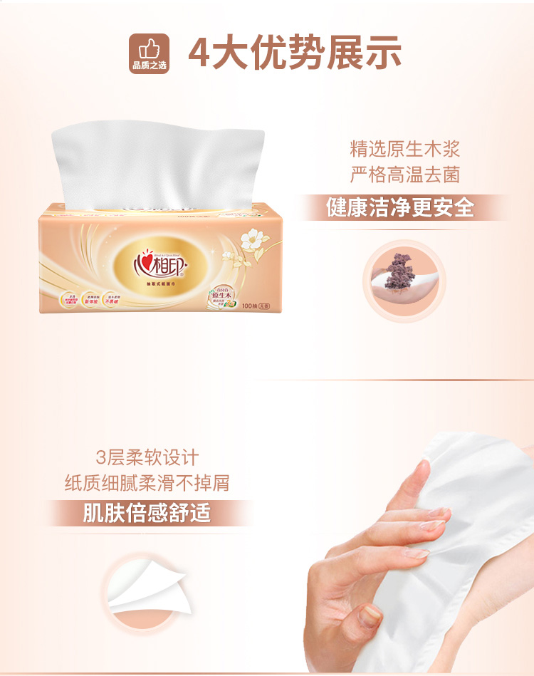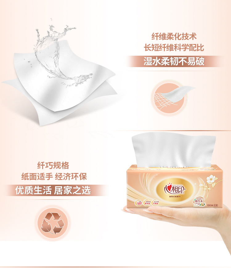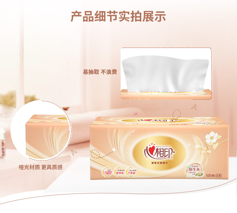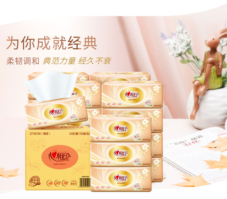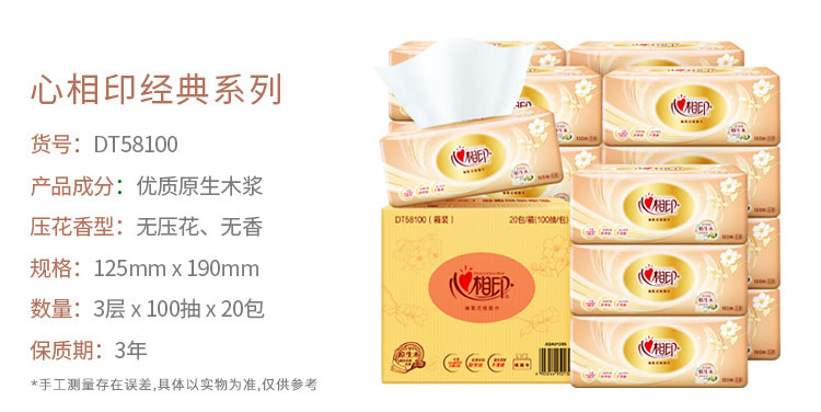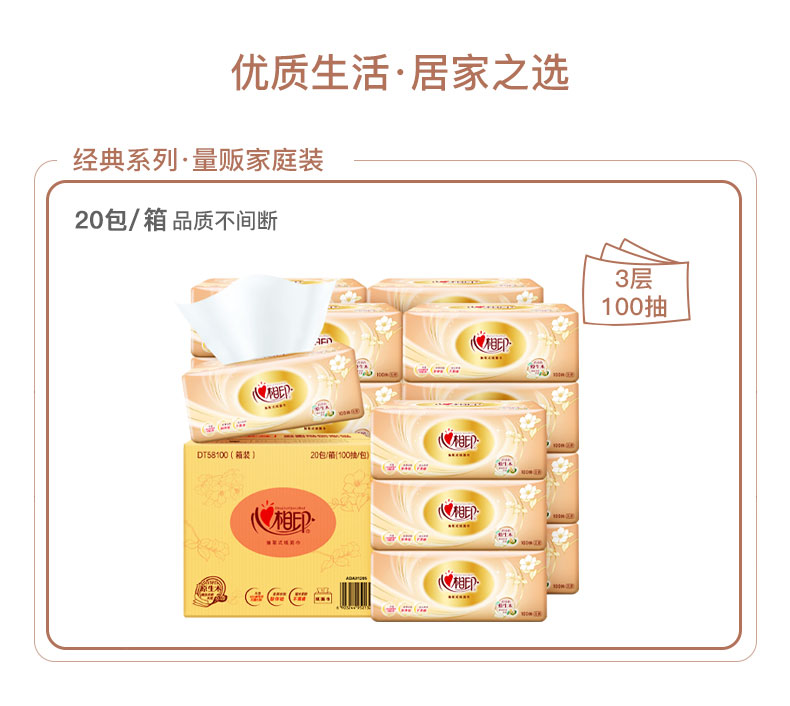 DT58100(箱装)心相印金装金典100抽三层塑装纸面巾20包装