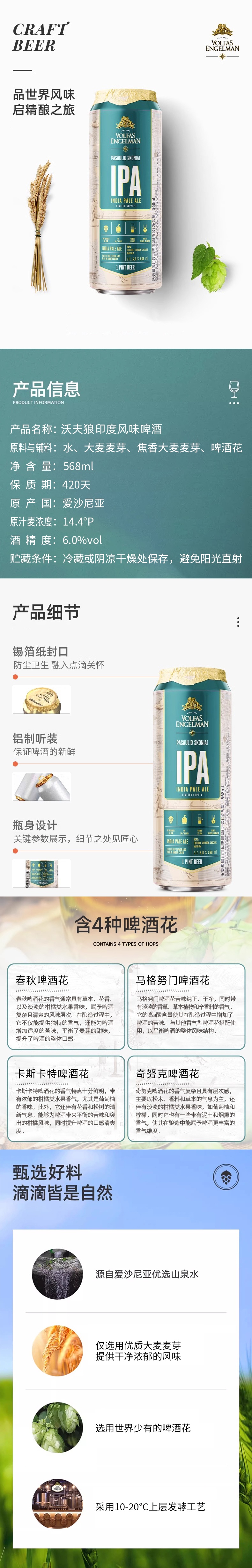 爱沙尼亚进口沃夫狼小麦白丨印度风味(IPA)啤酒568ml