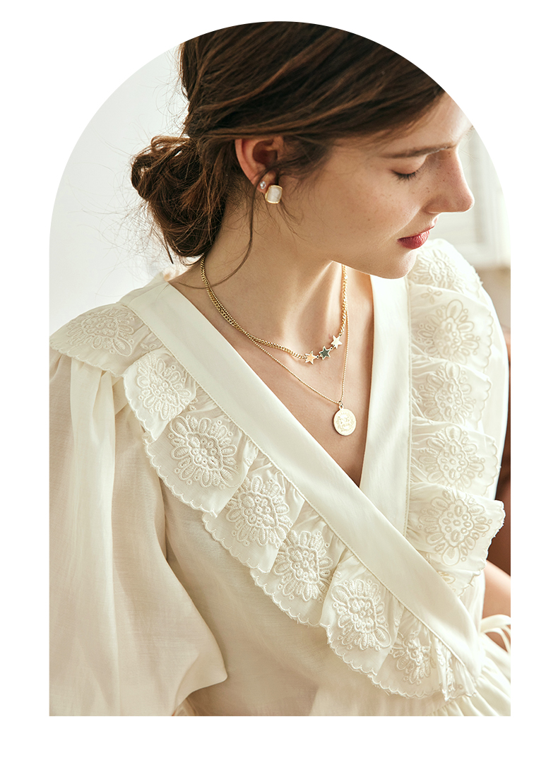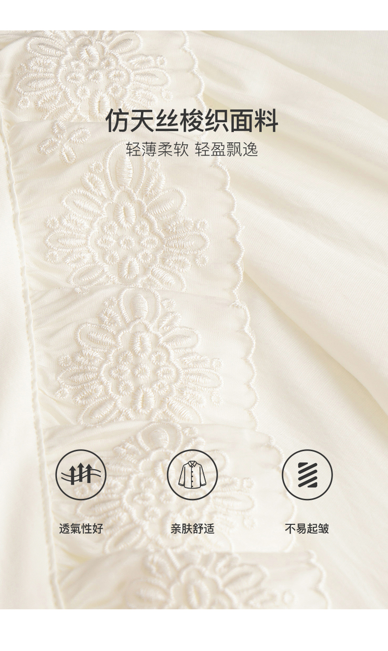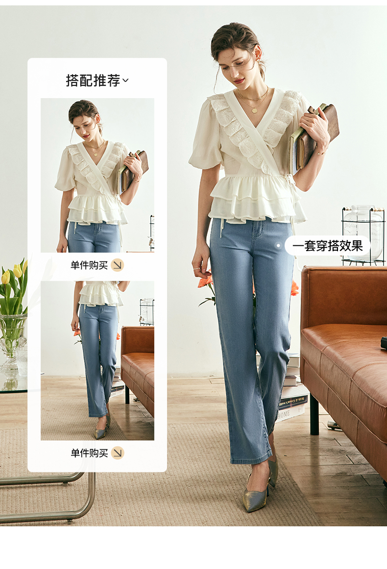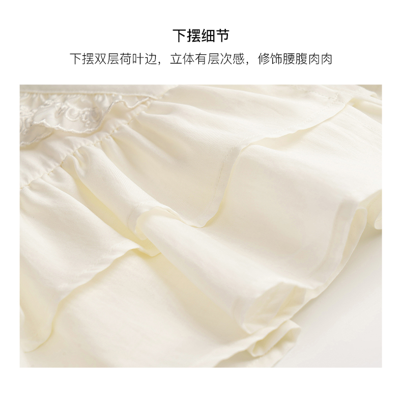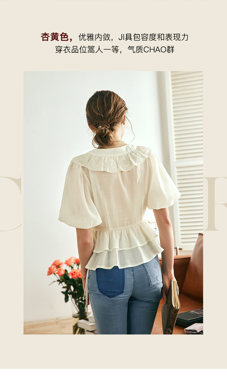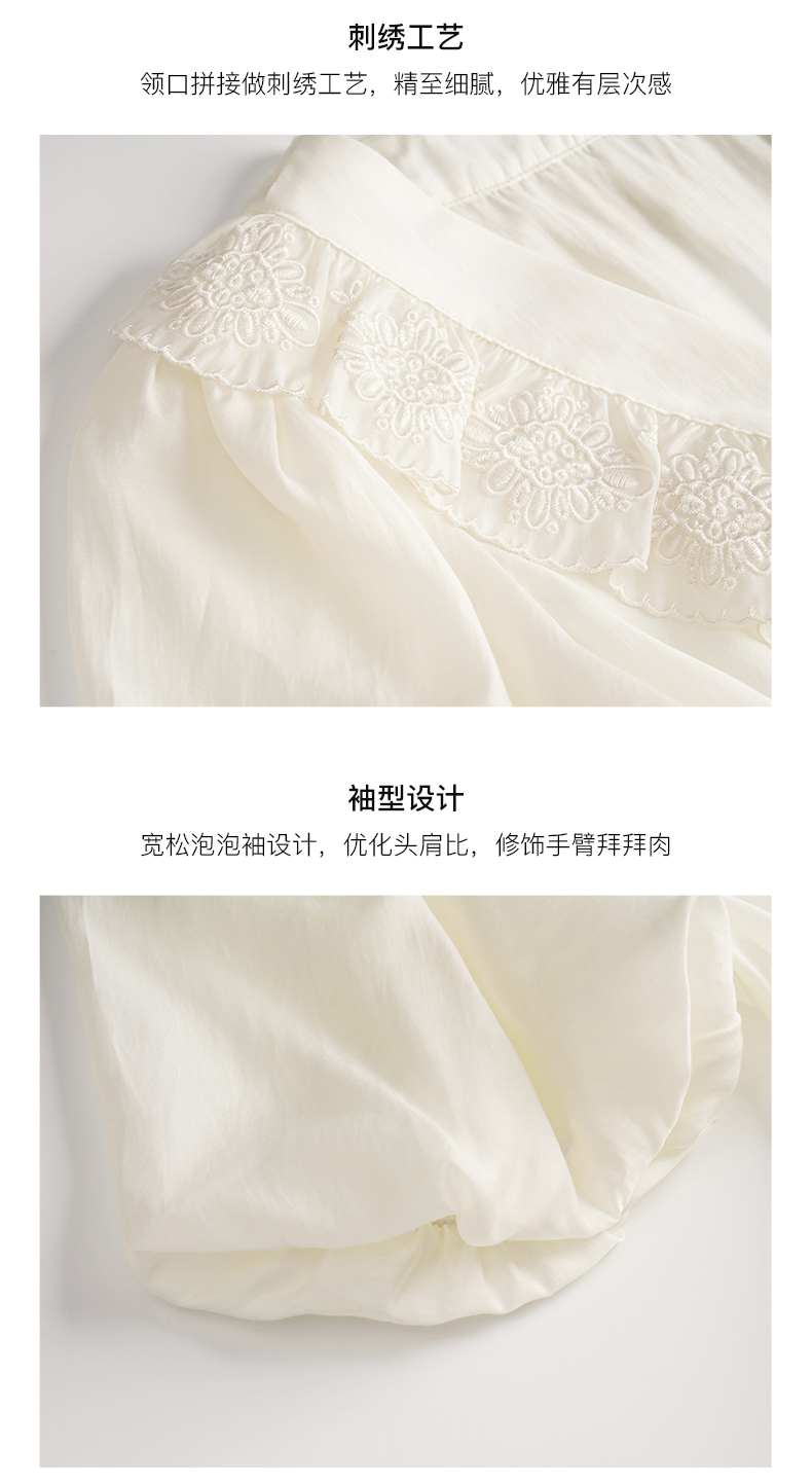 OLrain欧芮儿法式V领蕾丝雪纺衫女夏季2023年新款荷叶边甜美小衫
