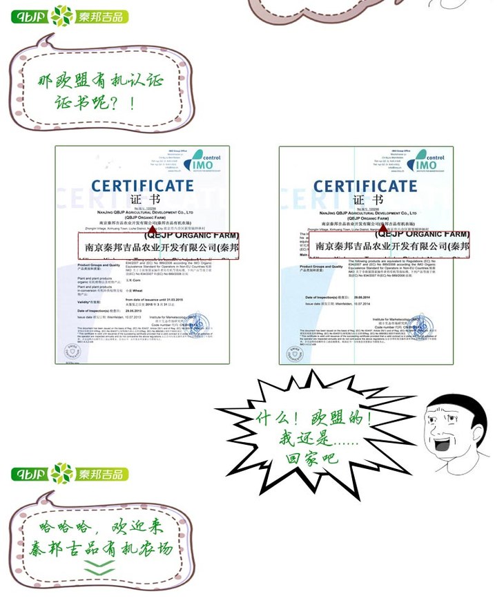 - 秦邦吉品有机农场自2005年从事有机事业,获得中国有机认证,德米特认证,欧盟认证。