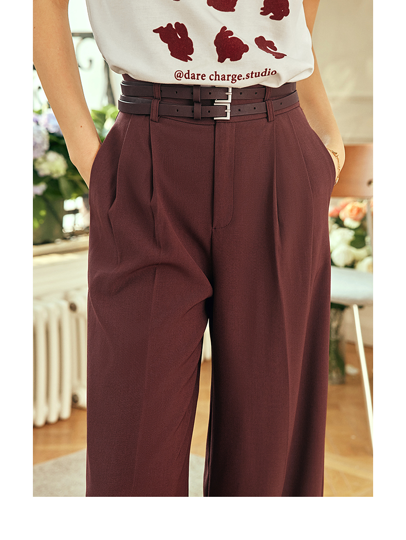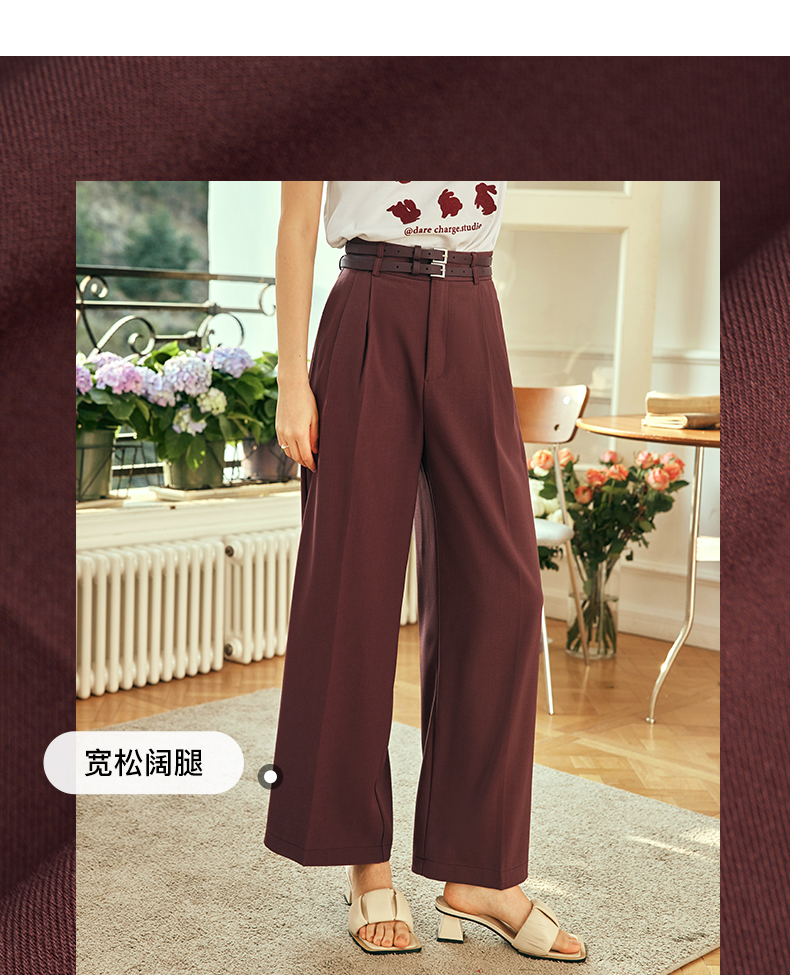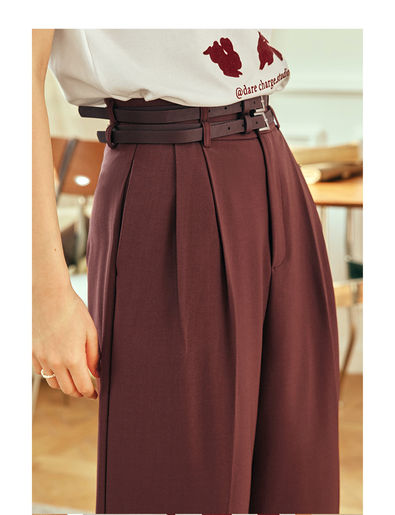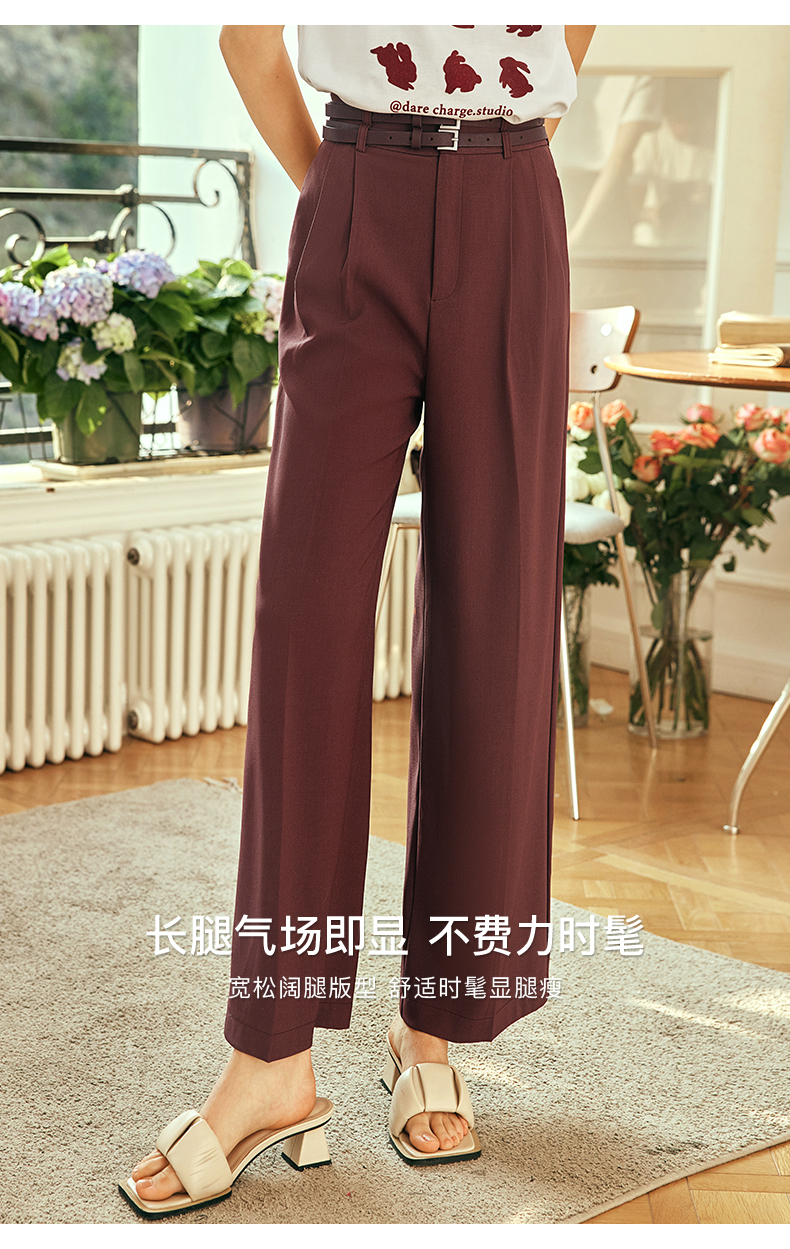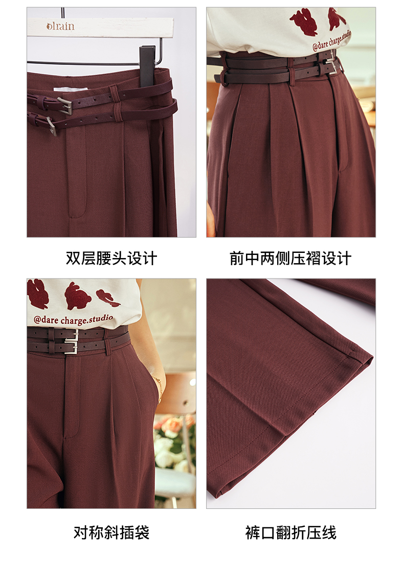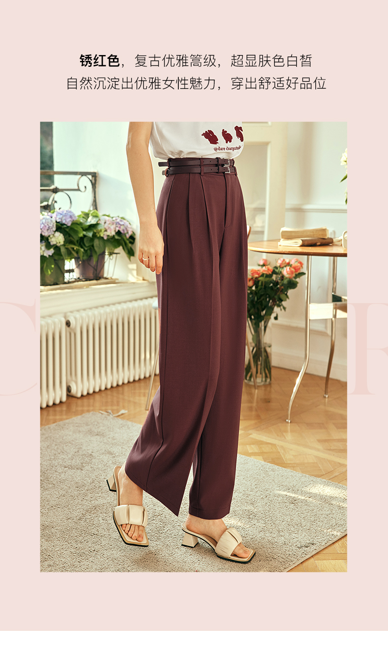 OLrain欧芮儿法式红色休闲裤女夏季2023年新款高腰阔腿垂感西装裤