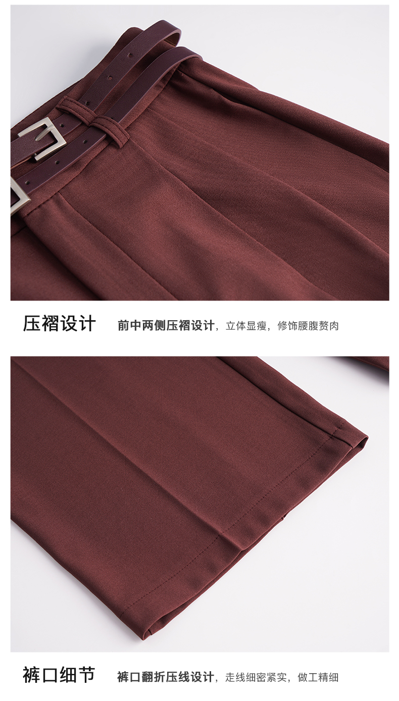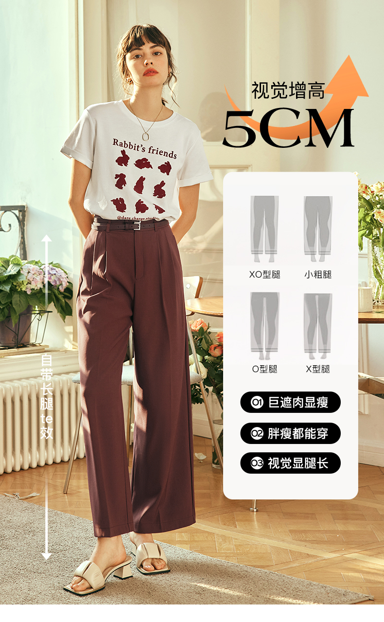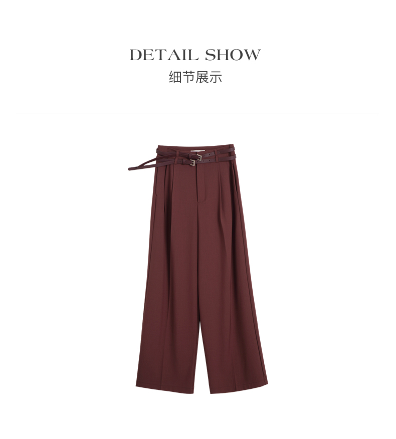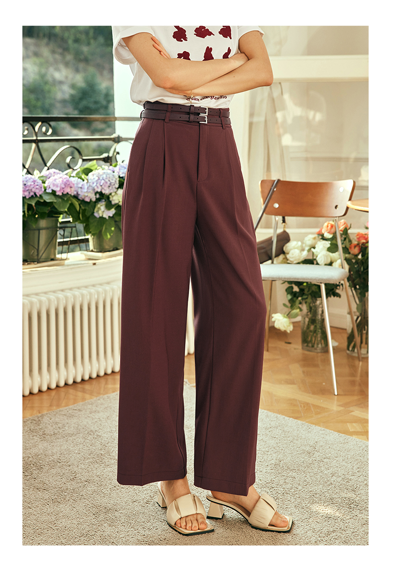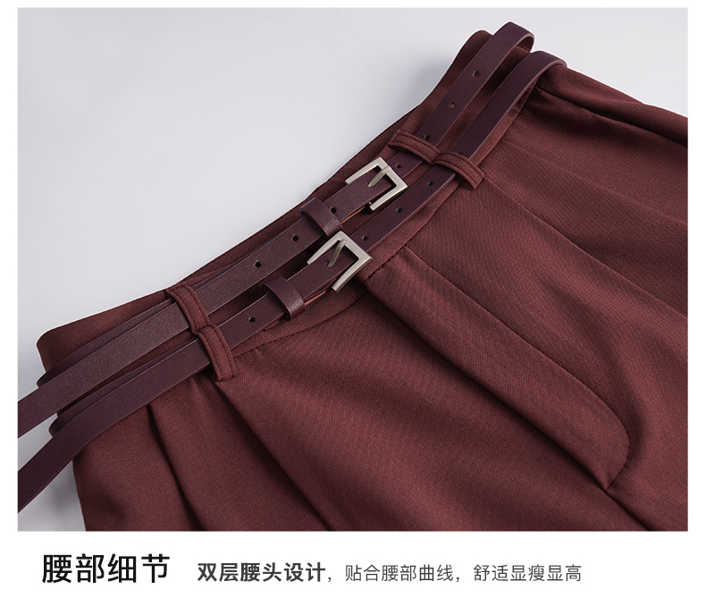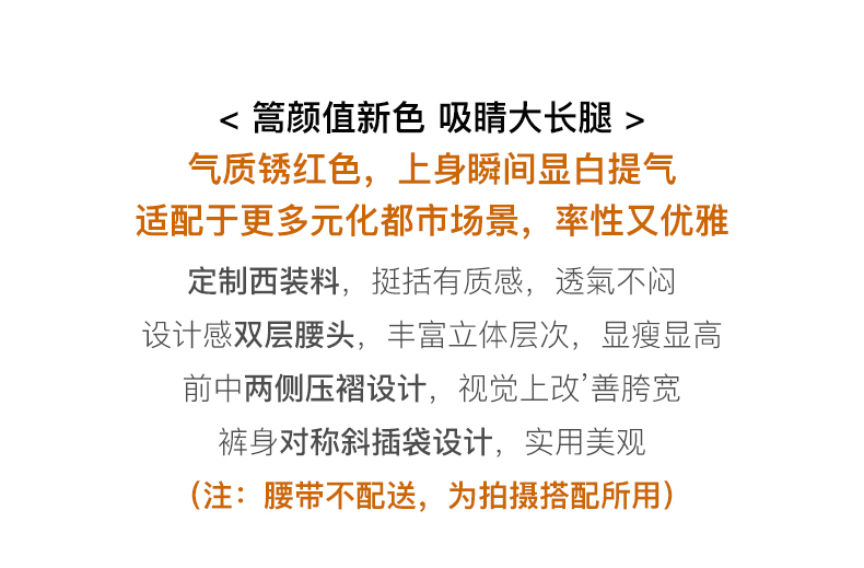 OLrain欧芮儿法式红色休闲裤女夏季2023年新款高腰阔腿垂感西装裤