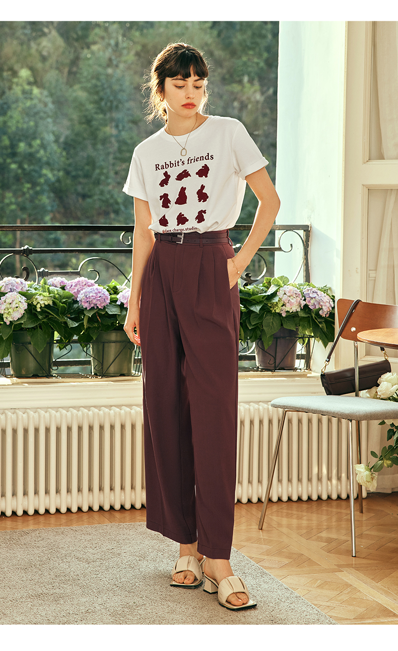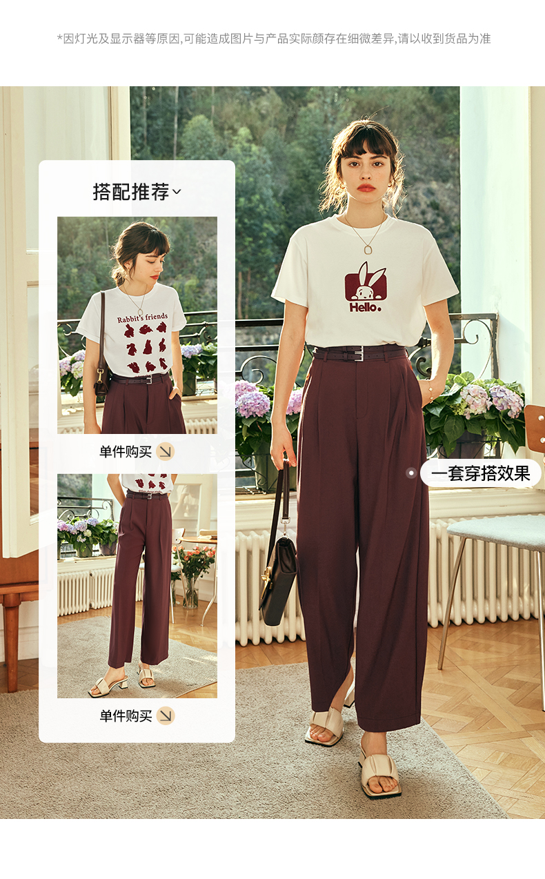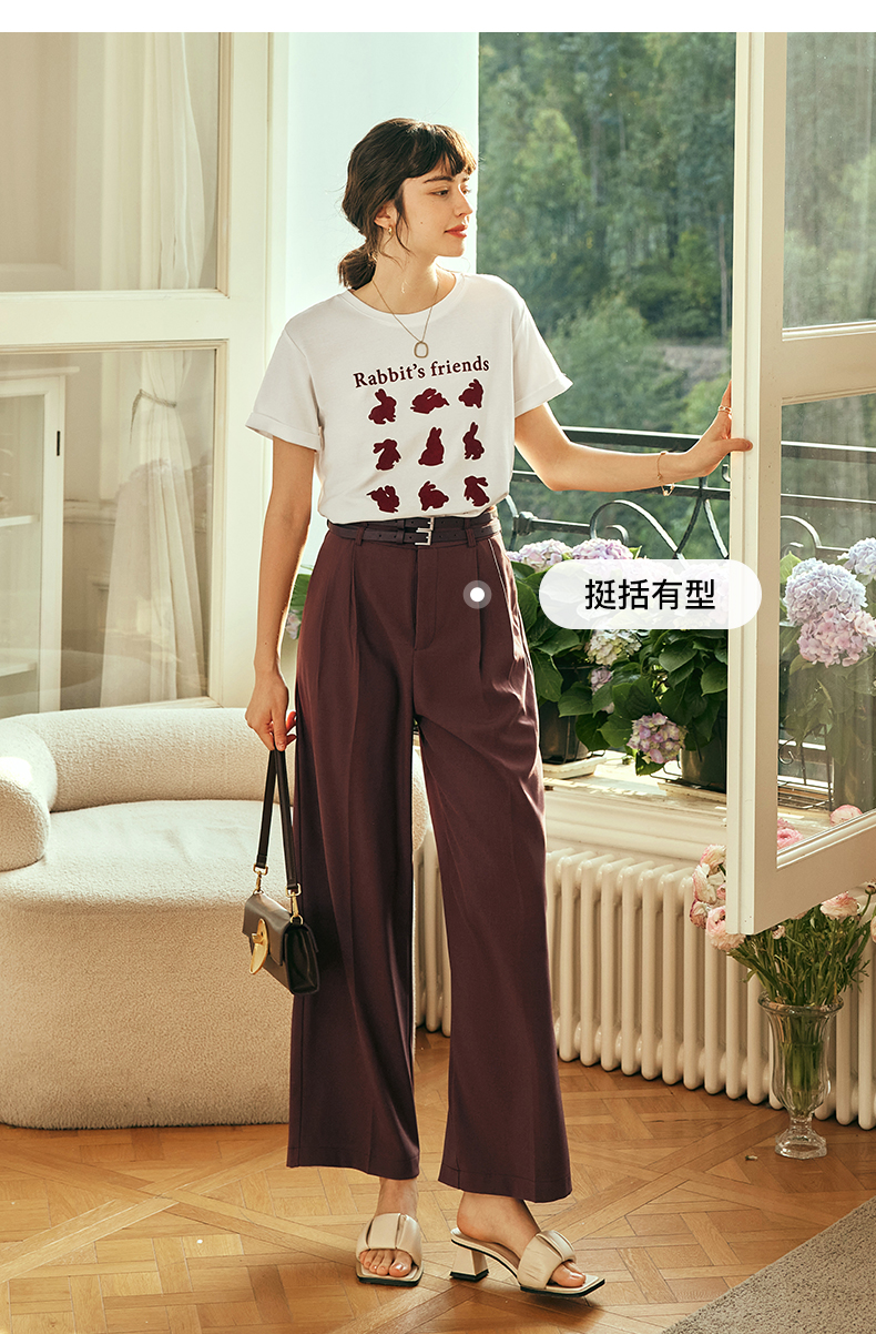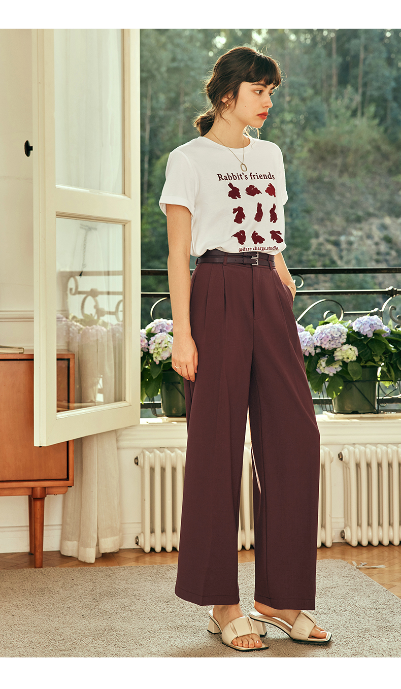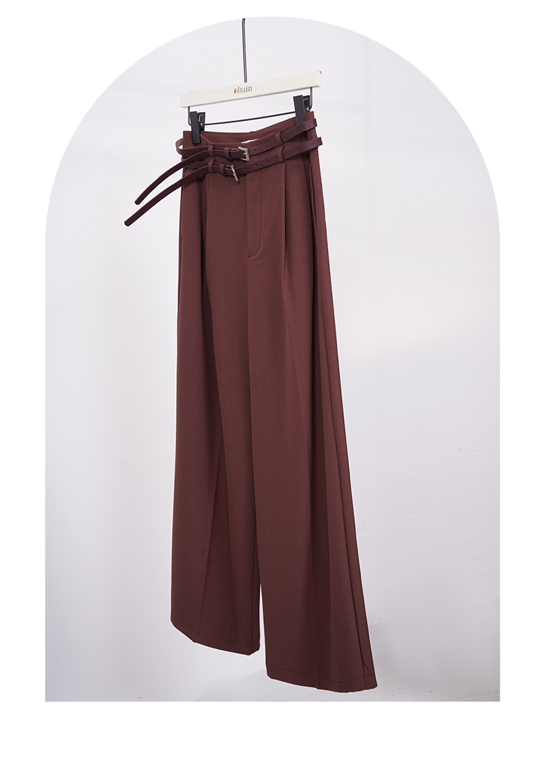 OLrain欧芮儿法式红色休闲裤女夏季2023年新款高腰阔腿垂感西装裤