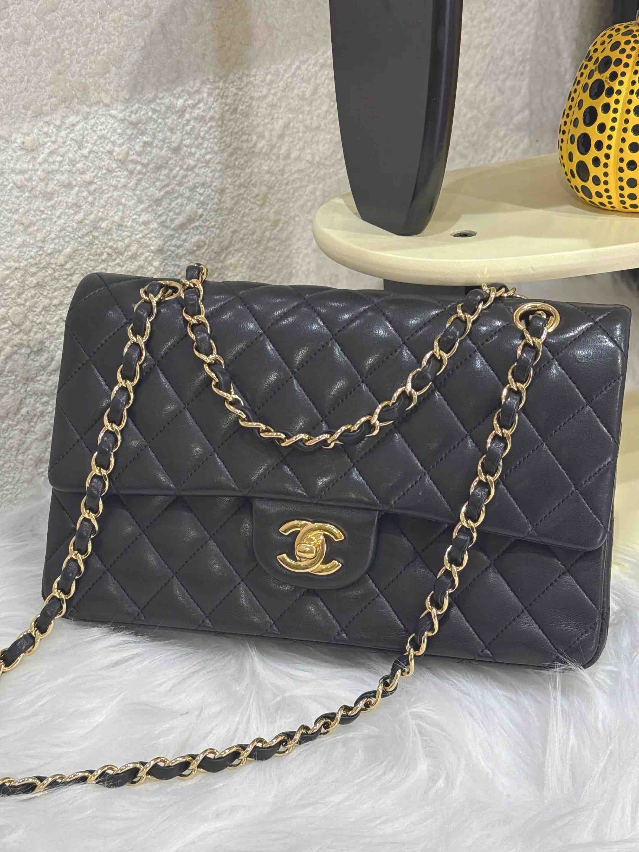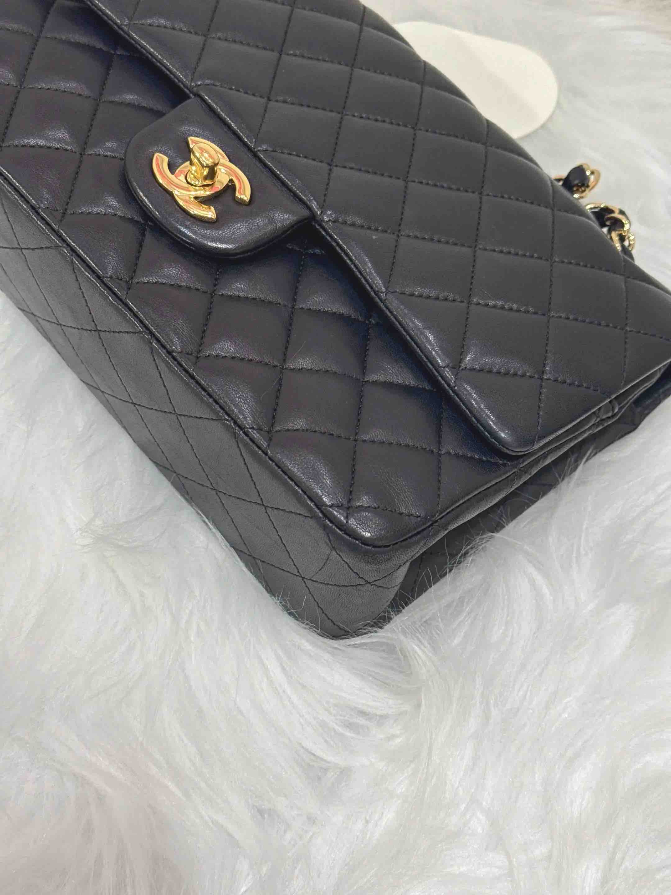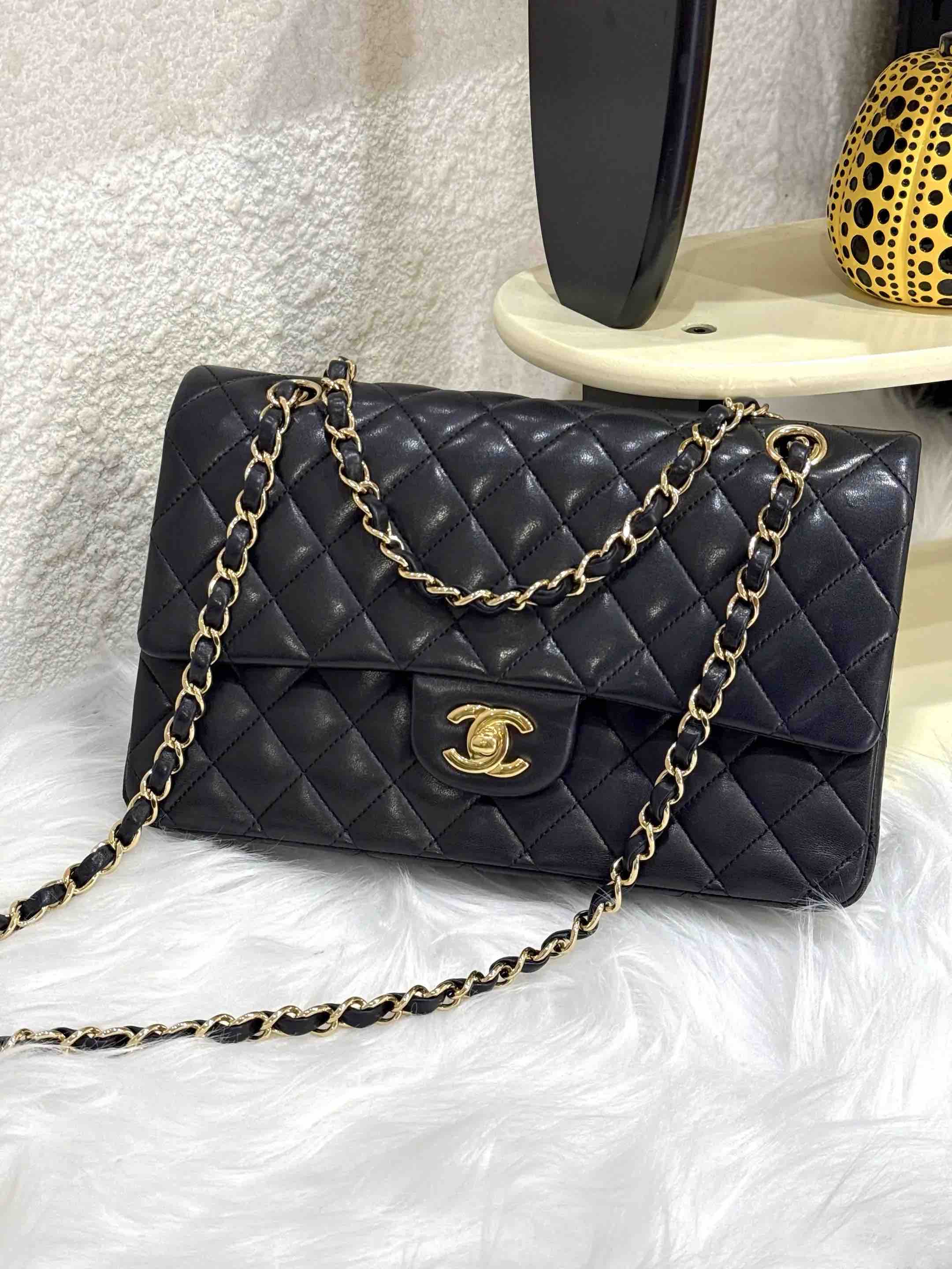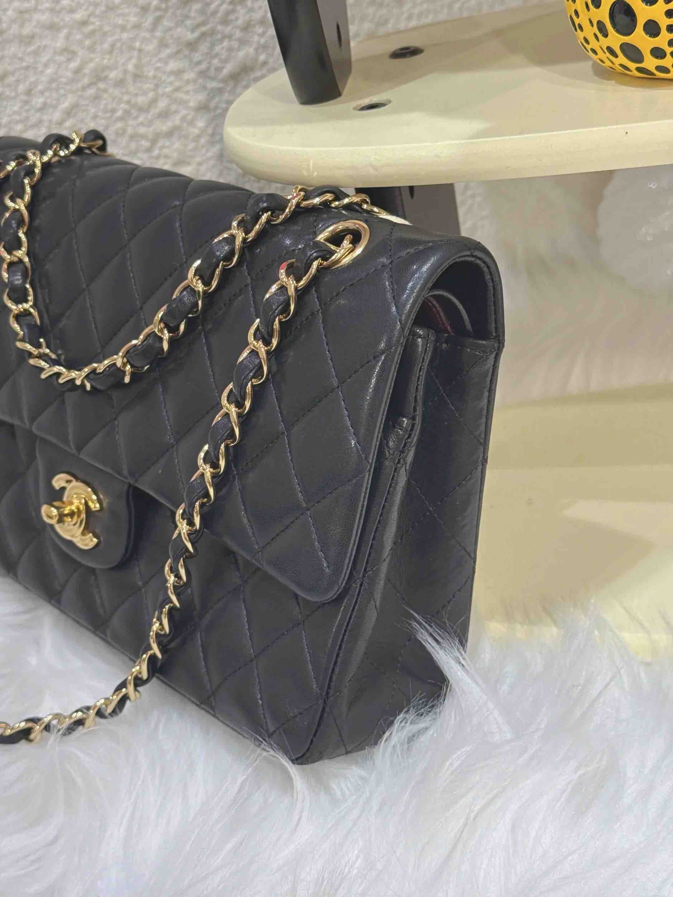 【商品详情】正品二手 Chanel 中号 黑金 羊皮 CF 单肩包🥰 95新 25*13 镭射20开。配件:防尘袋。永恒的经典