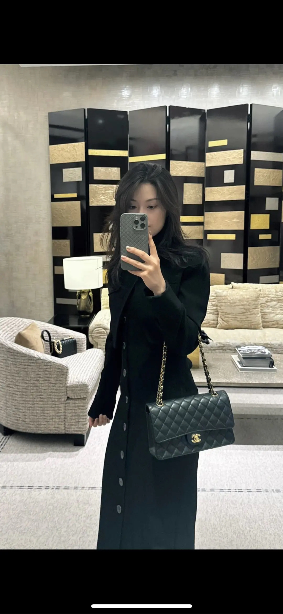 Chanel 中号 黑金 羊皮 CF 单肩包