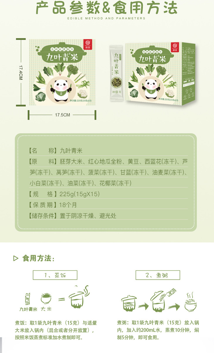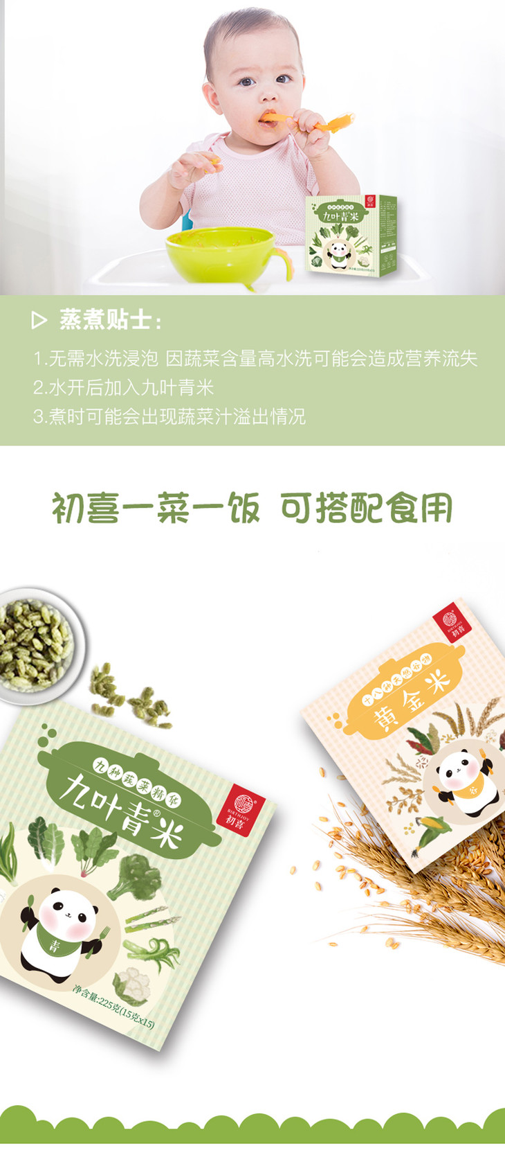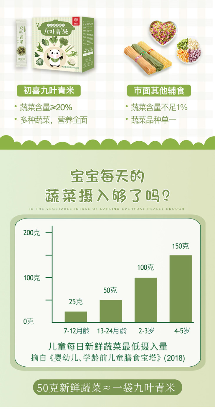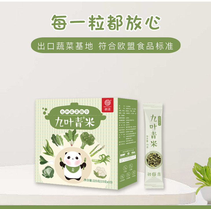 初喜九叶青米9种蔬菜米蔬菜面儿童颗粒面米粉无添加盐冻干营养