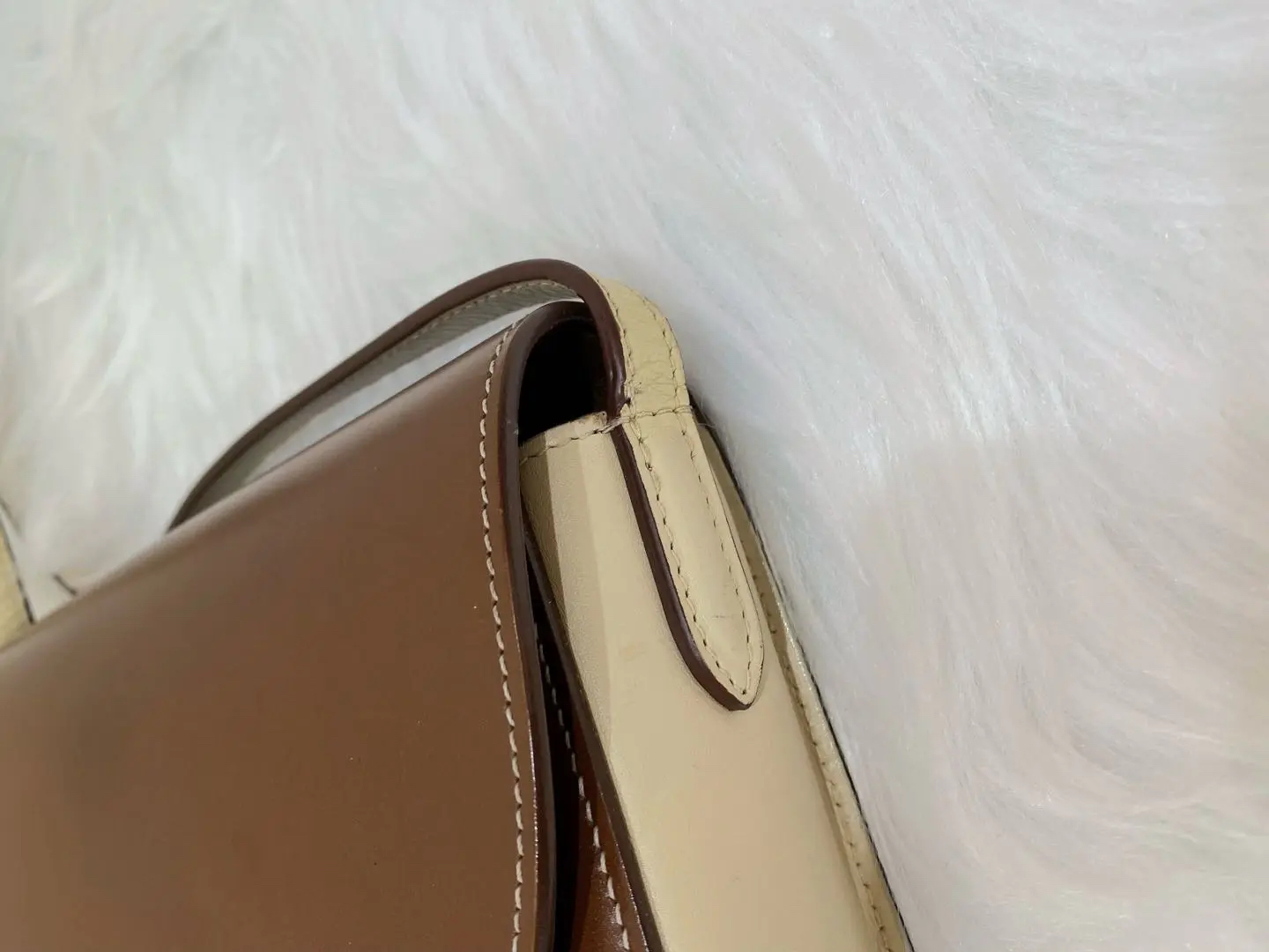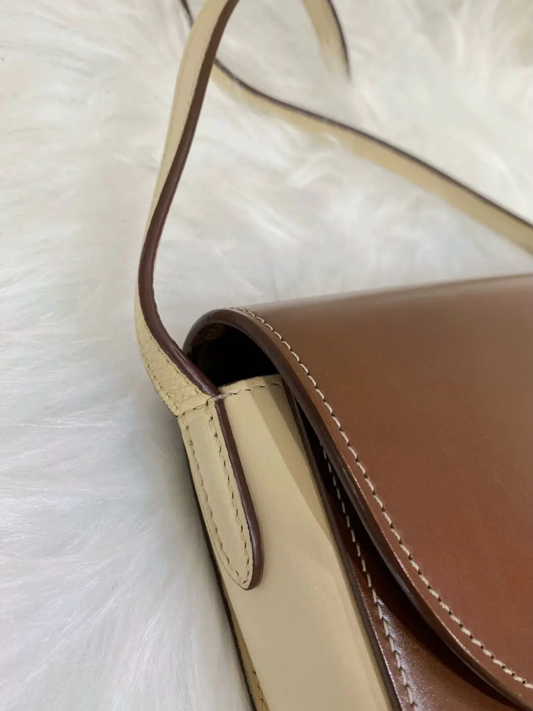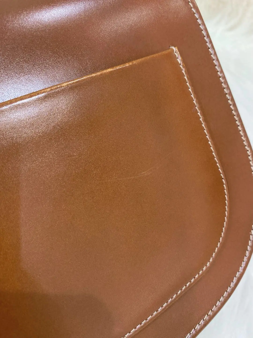 【商品详情】正品二手 Celine trotteur 小号 牛皮 焦糖色 中古 马鞍包 🤩95新 18×17。翻盖一侧轻微干裂,包面微微使用痕迹