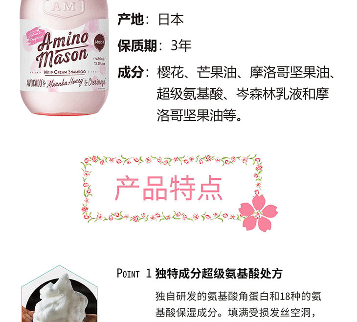 阿蜜浓梅森 氨基酸植物精粹润泽护发素(樱花)450ml