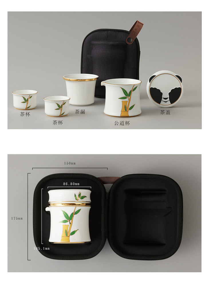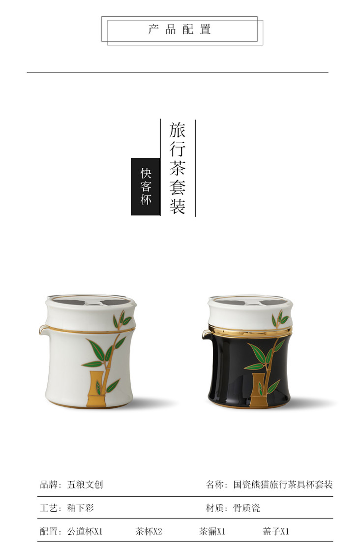 五粮文创·熊猫快客杯茶具套装(白色款) *1套