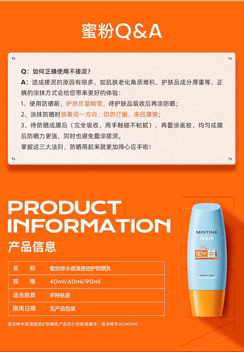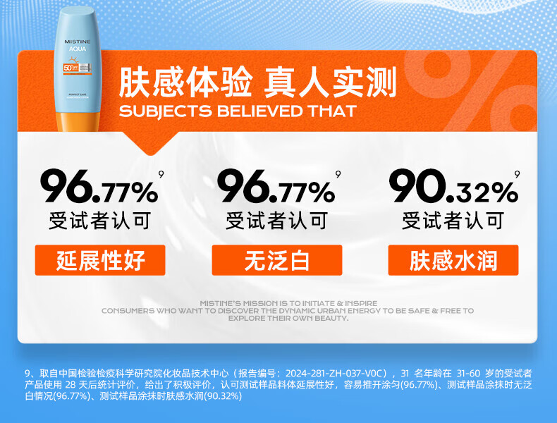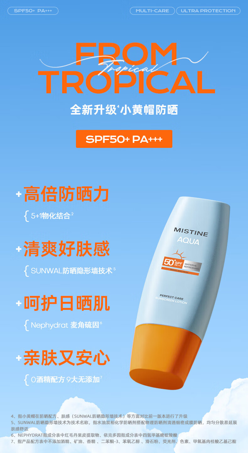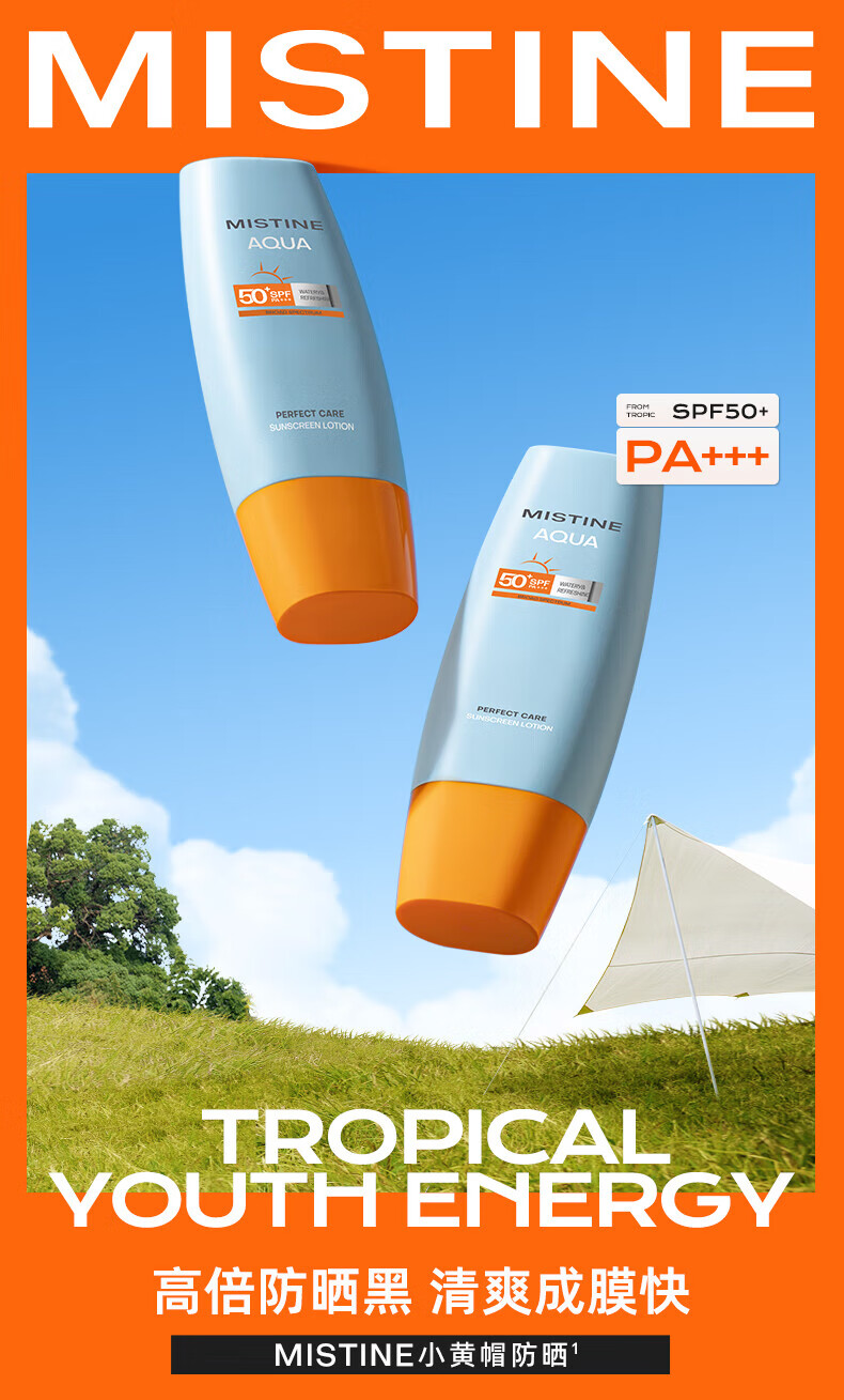 蜜丝婷 Mistine 水感清透倍护防晒乳 SPF50+PA+++ 40ml 身体面部隔离紫外线防晒液 小黄帽面部防晒