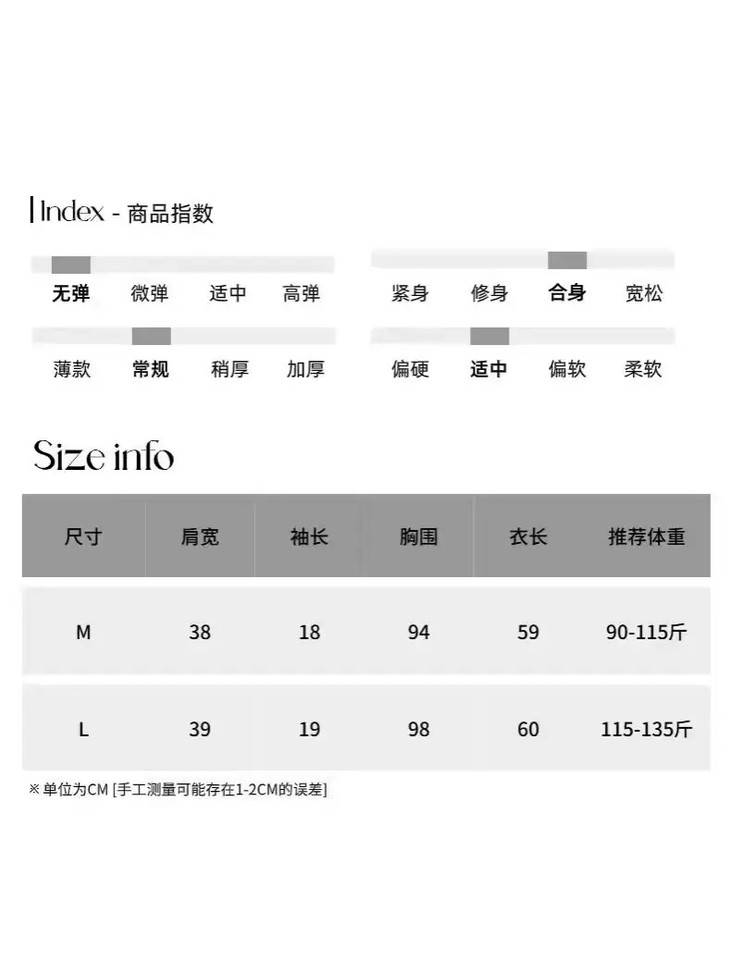 另外一款V领短袖版型更修身一些,它采用70%粘胶纤维和30%氨纶混纺而成,垂顺感更突出。弹性很好,有M和L两个尺码可选,M码建议体重90-115斤的女性穿;L码建议体重115-135斤的女性穿;喜欢宽松版型的可以买大一码。