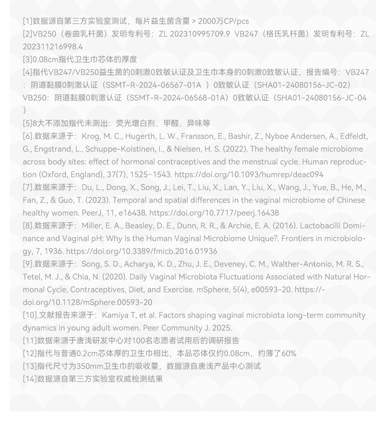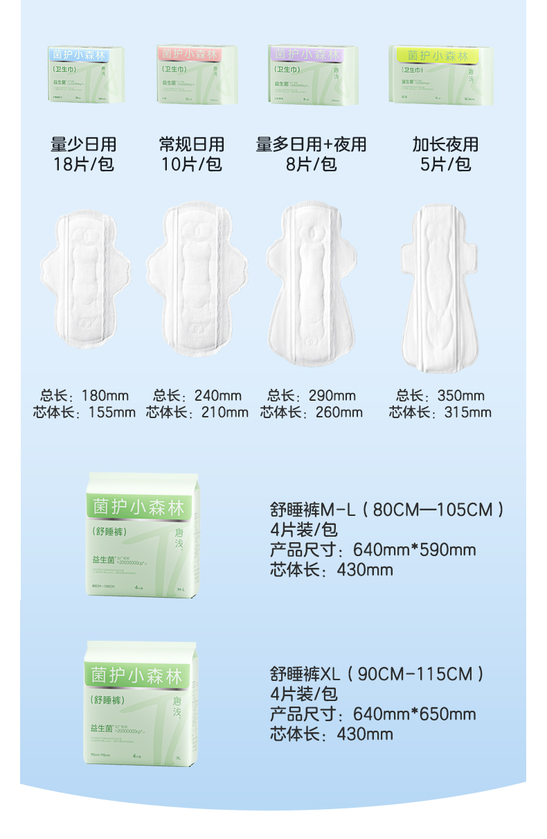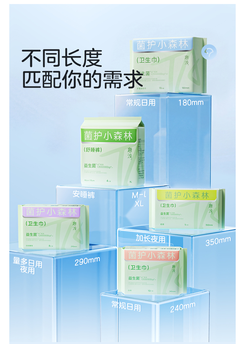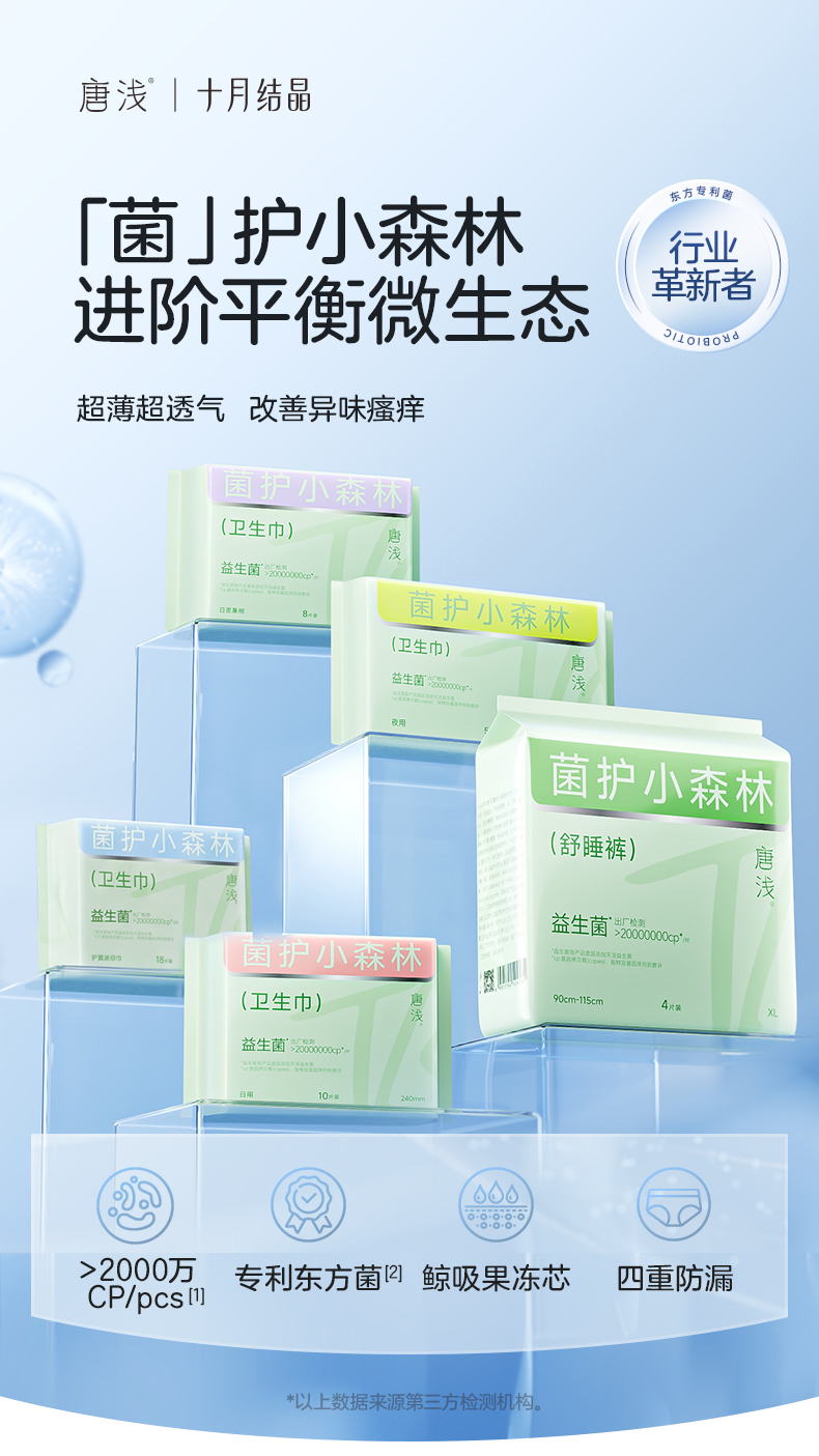 【92.9元任选10件】唐浅益生菌卫生巾日夜用组合姨妈巾超薄透气