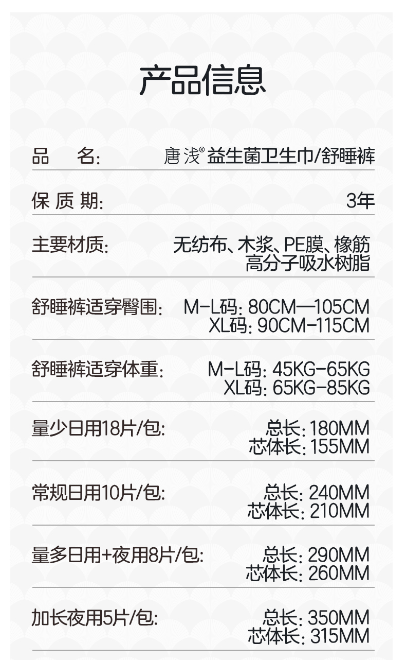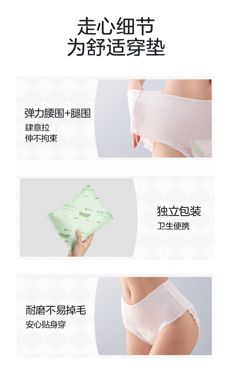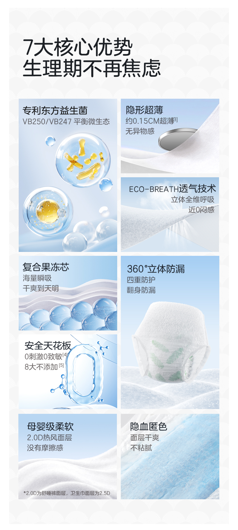 【92.9元任选10件】唐浅益生菌卫生巾日夜用组合姨妈巾超薄透气