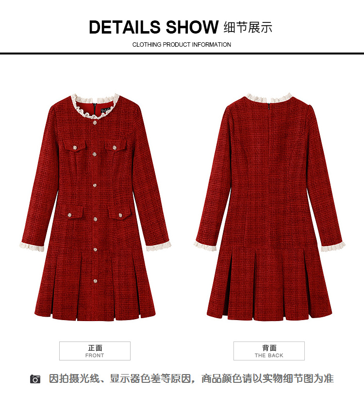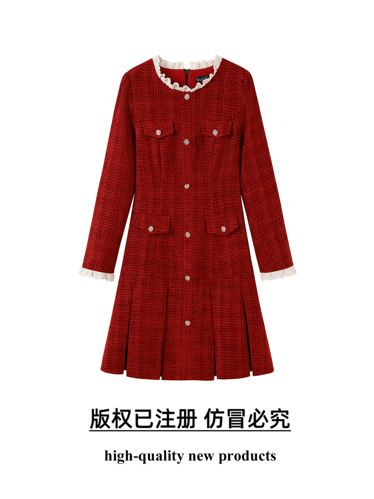 奢姿大码女装2025冬季时尚撞色圆领连衣裙胖妹妹气质显瘦通勤长裙9954854019
